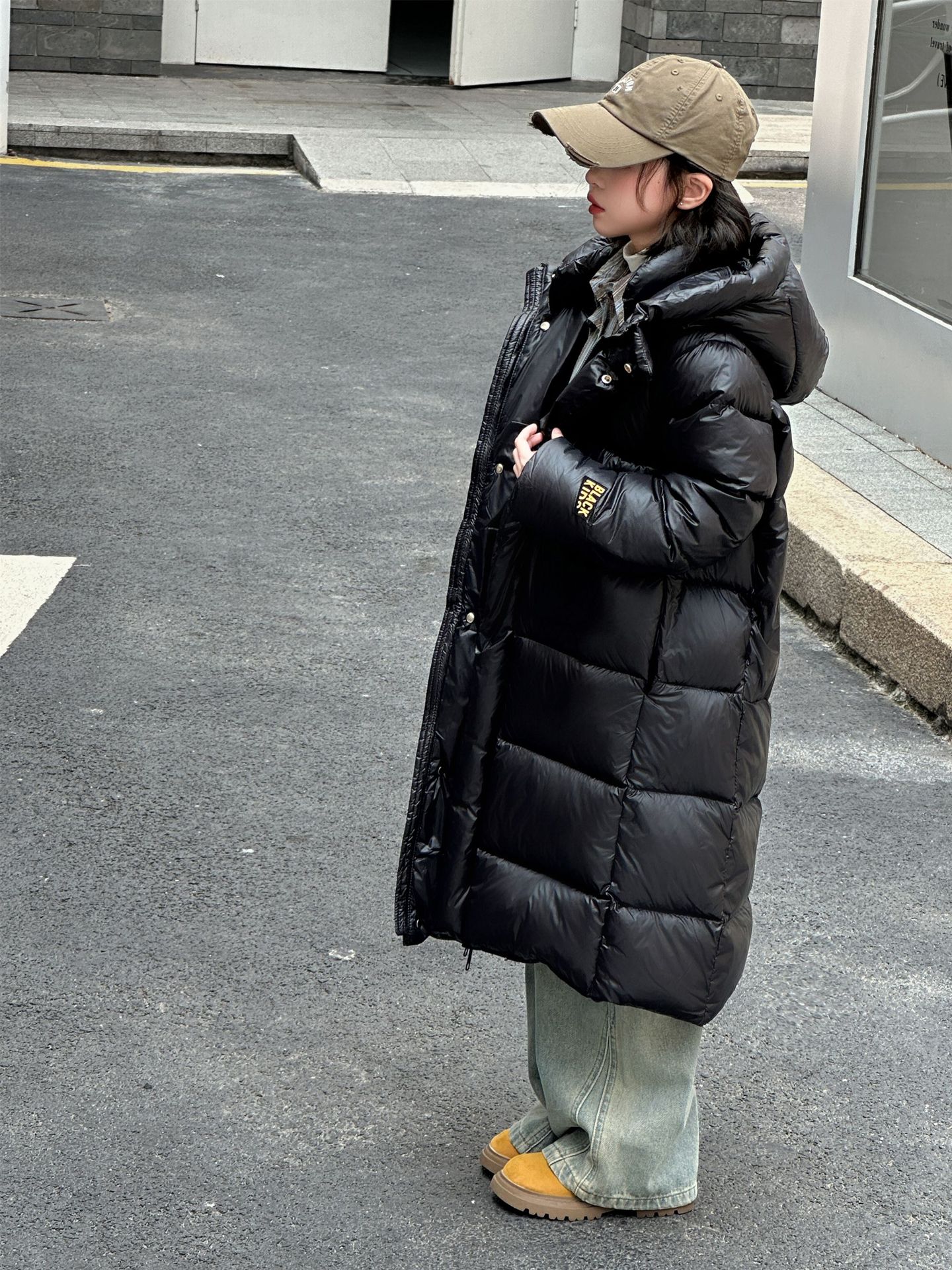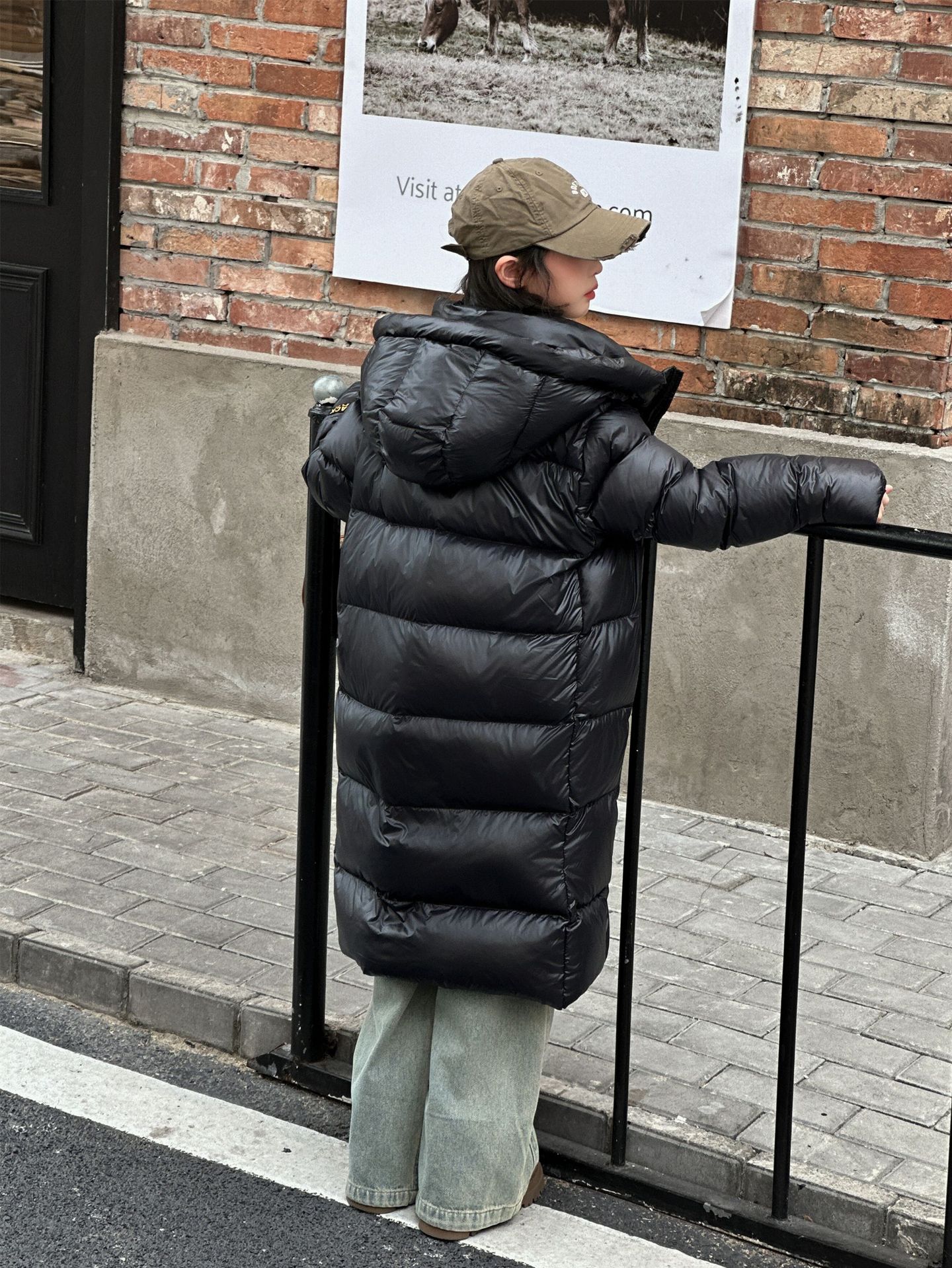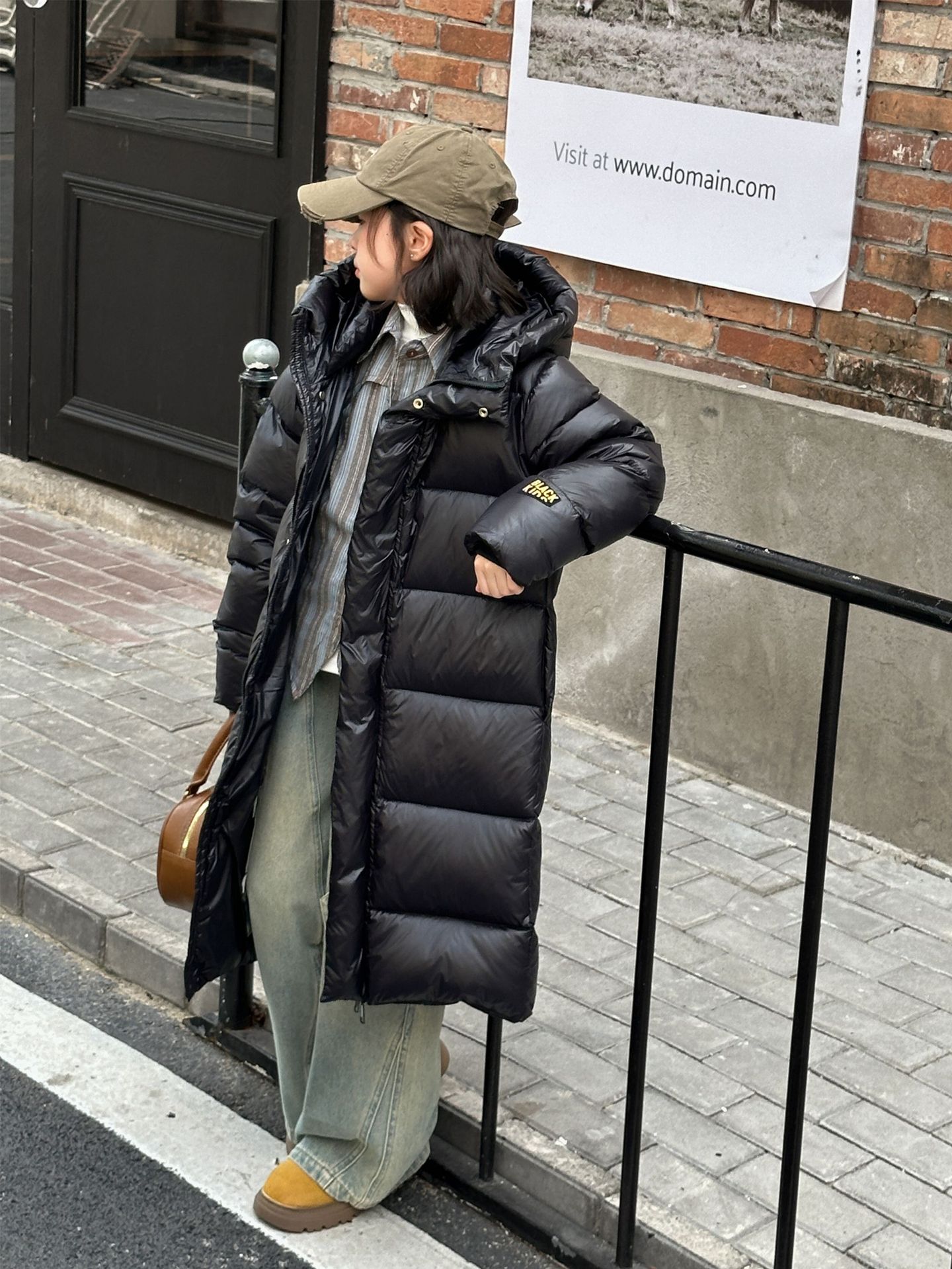Детский пуховик, черный и золотой, средней длины, утолщенный с золотой подкладкой, детское пальто с капюшоном, утолщенное и теплое.