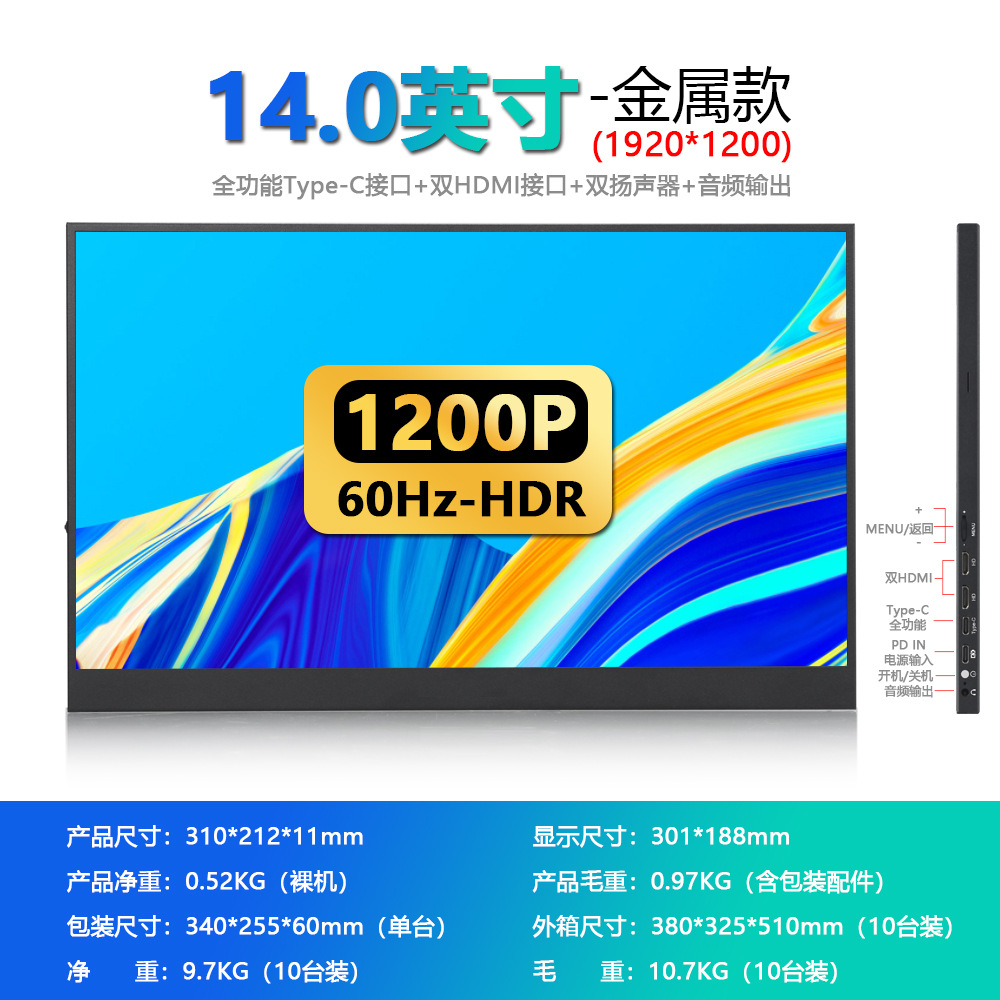 10.5inch 1920*1280-60 Гц, двухслойная подключаемая однолинейная связь; 12.2inch 1920*1200-60 Гц металлическая модель, одинарная глухая вилка, однолинейная связь; 13.3inch 1920*1200-60 Гц металлическая модель с двойным HDMI однолинейным общением; 13.3inch 1920*1080-60 Гц металлическая модель с двойным однолинейным соединением HDMI; 14.0inch Металлическая модель 1920*1200-60 Гц, двойной однолинейный порт HDMI; 14.0inch Металлическая модель 1920*1200-60 Гц, двойной однострочный сенсорный экран HDMI; 14.0inch 2560*1600-60 Гц металлическая модель с двойным однолинейным соединением HDMI; 15.6inch Матовая модель 1920*1080-60 Гц, двойной однолинейный порт HDMI; 15.6inch 1920*1080-60 Гц металлическая модель с двойным однолинейным соединением HDMI; 15.6inch Металлическая модель 1920*1080-60 Гц, двойной однострочный сенсорный экран HDMI; 15.6inch 1920*1080-144 Гц металлическая модель с двойным однолинейным соединением HDMI; 15.6inch 3840*2160-60 Гц металлическая модель с двойной глухой вилкой, однолинейная связь; 15.6inch Металлическая модель 3840*2160-60 Гц-OLED, двойная глухая вилка и однолинейная связь; 16.0inch Металлическая модель 1920*1200-60 Гц, двойной однолинейный порт HDMI; 16.0inch Металлическая модель 1920*1200-60 Гц, двойной однострочный сенсорный экран HDMI; 16.0inch 2560*1600-60 Гц металлическая модель с двойным однолинейным соединением HDMI; 16.0inch 2560*1600-144 Гц металлическая модель с двойной глухой вилкой, однолинейная связь; 16.0inch 3840*2400-60 Гц металлическая модель с двойной глухой вилкой, однолинейная связь; 17.3inch 1920*1080-60 Гц металлическая модель с двойным однолинейным соединением HDMI; 17.3inch 1920*1080-144 Гц металлическая модель с двойным однолинейным соединением HDMI; 17.3inch 2560*1440-60 Гц металлическая модель с двойным однолинейным соединением HDMI; 17.3inch 2560*1440-165 Гц металлическая модель с двойной глухой вилкой, однолинейная связь; 17.3inch 3840*2160-60 Гц металлическая модель с двойной глухой заглушкой, однолинейная связь; 18.0inch 1920*1200-120 Гц металлическая модель с двойной глухой вилкой, однолинейная связь; 18.0inch 1920*1200-165 Гц металлическая модель с двойной глухой вилкой, однолинейная связь; 18.0inch 2560*1600-144 Гц металлическая модель с двойной глухой вилкой, однолинейная связь; 15.6inch 1920*1080-60 Гц тип кронштейна, одинарная заглушка и однолинейная связь; 18,5-дюймовая модель с подставкой 1920*1080-100 Гц-IPS; 21,5-дюймовая модель с подставкой 1920*1080-100 Гц-IPS; 23,8-дюймовая модель с подставкой 1920*1080-100 Гц-IPS; 18,5-дюймовый сенсорный экран 1920*1080-100HZ-IPS