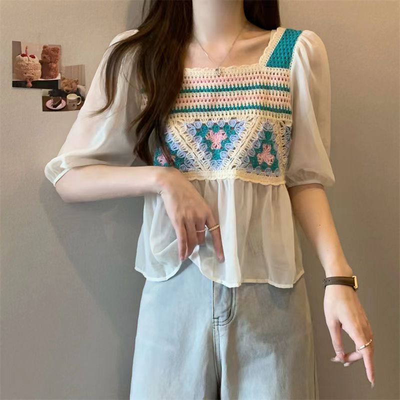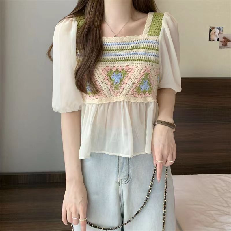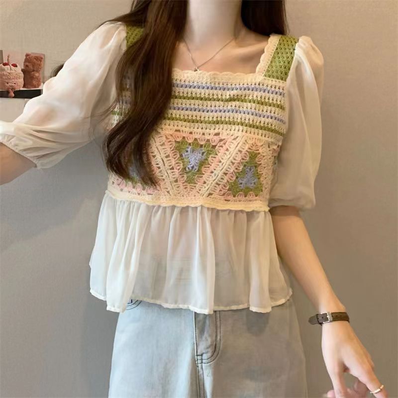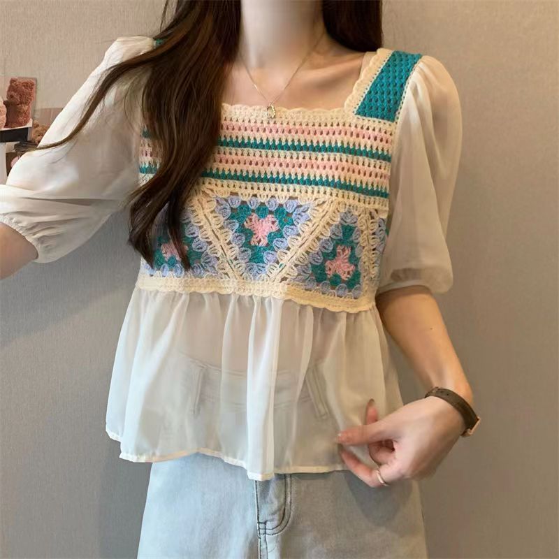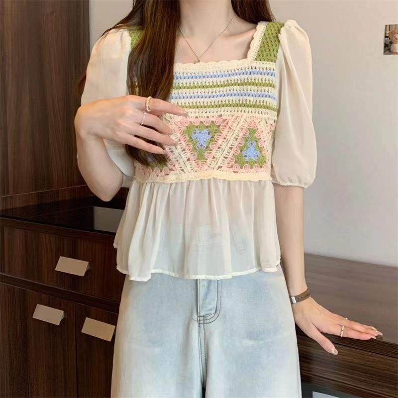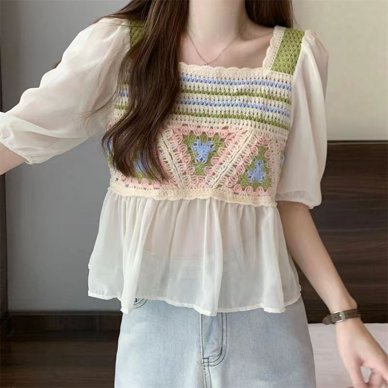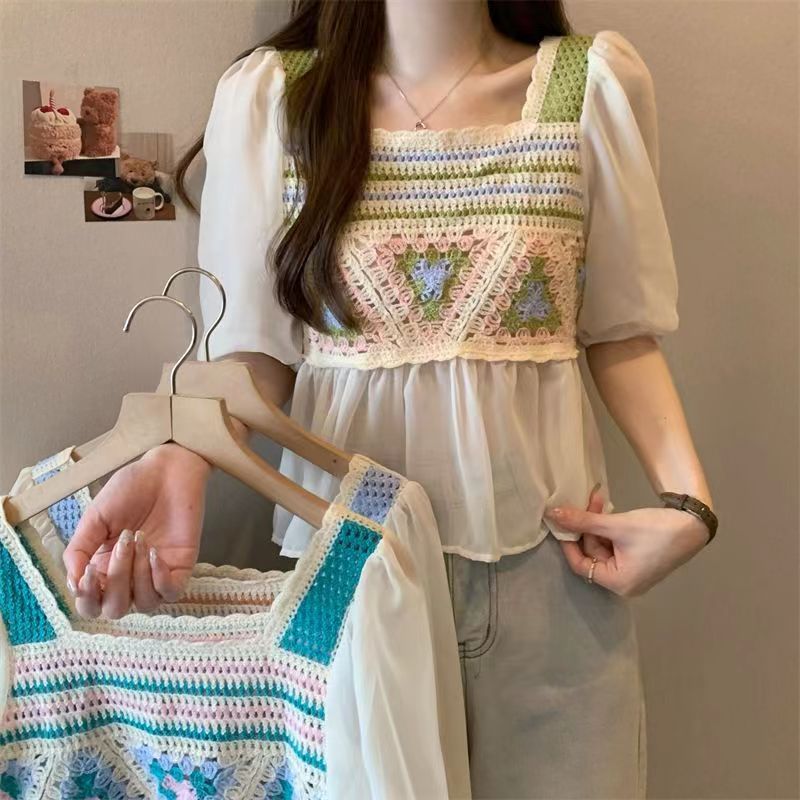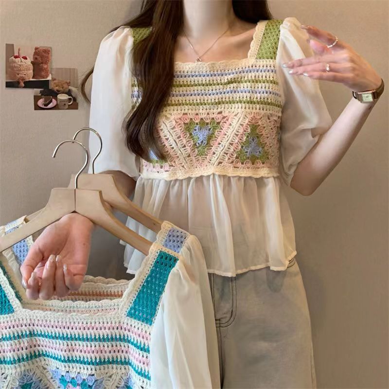 Летняя новая шифоновая рубашка Солнцезащитная Шаль вязаная крючком универсальная полая вязаная верхняя одежда милая Сладкая свежая