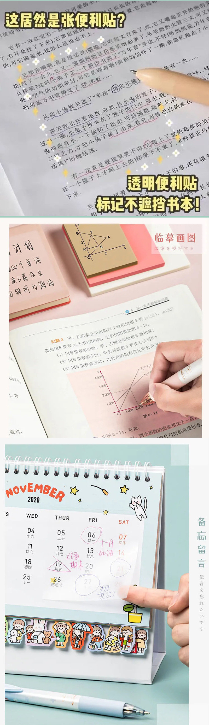Прозрачный липкий Примечание студента Примечание наклейки разрываемый простой Примечание бумаги ins Примечание наклейки N раз Примечание