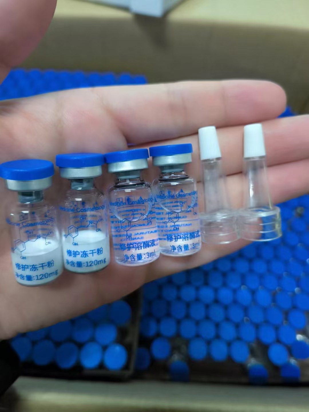 3 мл восстанавливающего сублимированного порошка + растворительная эссенция + головка трубы (без слов); 3 мл восстанавливающего сублимационного порошка + эссенция растворителя + головка трубы (с надписью); 5 мл восстанавливающего сублимационного порошка + растворительная эссенция + головка трубы (без слов); 5 мл сублимационного порошка синего медного пептида + эссенция растворителя + головка трубы (без слов); 3 мл сублимированного порошка астаксантина + растворительная эссенция (без слов); Белые сублимированные шарики + растворитель (10 пар = 10 флаконов порошка + 10 флаконов растворителя)); Апельсиновые сублимированные шарики + растворитель (10 пар = 10 флаконов порошка + 10 флаконов растворителя); Желтые сублимированные шарики + растворитель (10 пар = 10 флаконов порошка + 10 флаконов растворителя); Фиолетовые сублимированные шарики + растворитель (10 пар = 10 флаконов порошка + 10 флаконов растворителя); Зеленые сублимированные шарики + растворитель (10 пар = 10 флаконов порошка + 10 флаконов растворителя); Розовые сублимированные шарики + растворитель (10 пар = 10 флаконов порошка + 10 флаконов растворителя); Синие сублимированные шарики + растворитель (10 пар = 10 флаконов порошка + 10 флаконов растворителя)