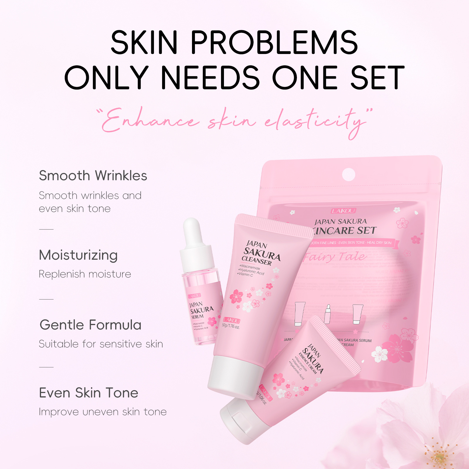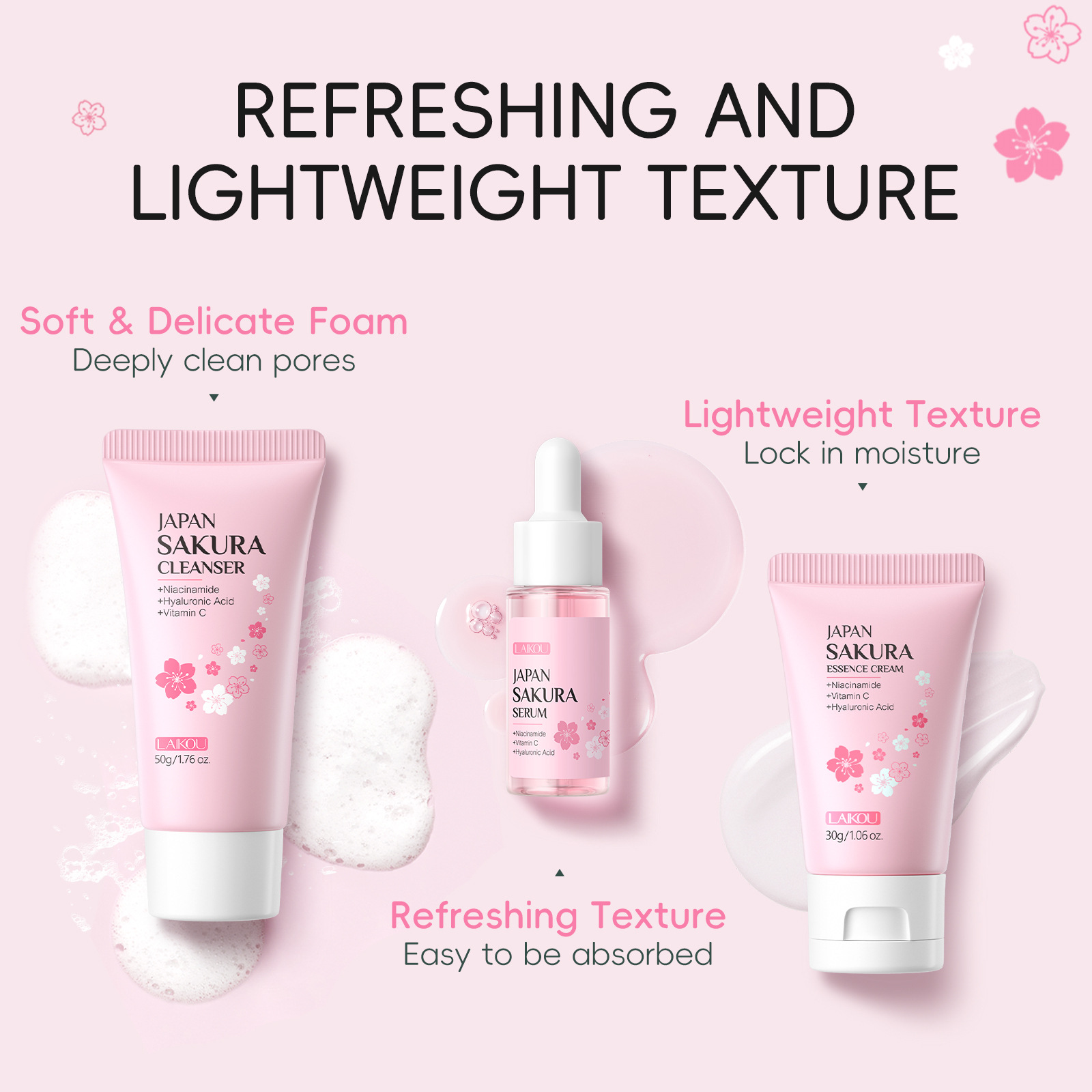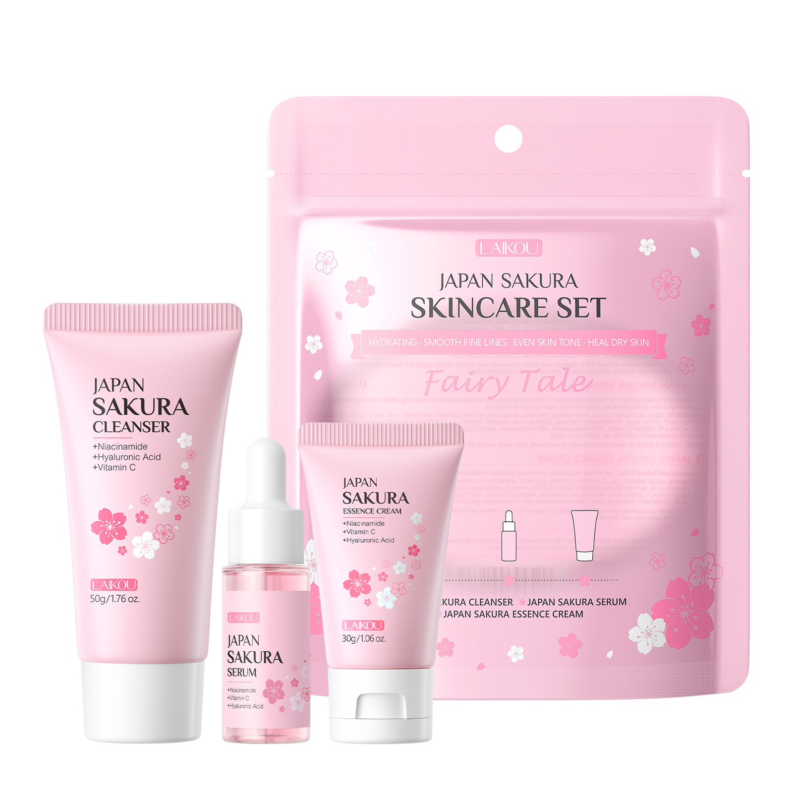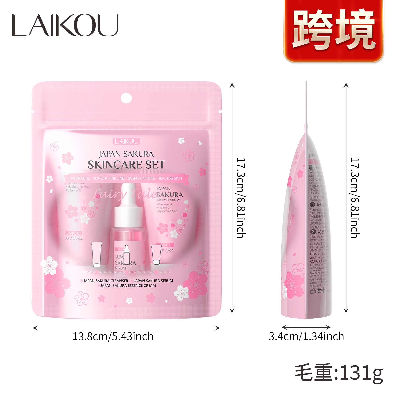 Трансграничный набор для ухода за кожей Laiko Japanese Sakura, 3 предмета, очищающее средство для лица, эссенционный крем FDA, набор для ухода за кожей