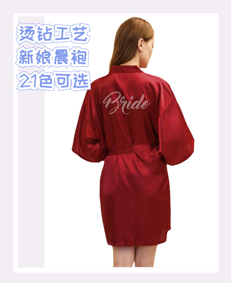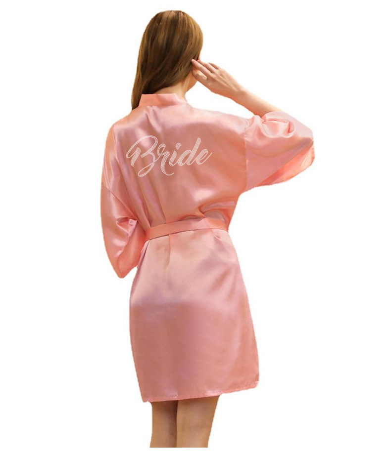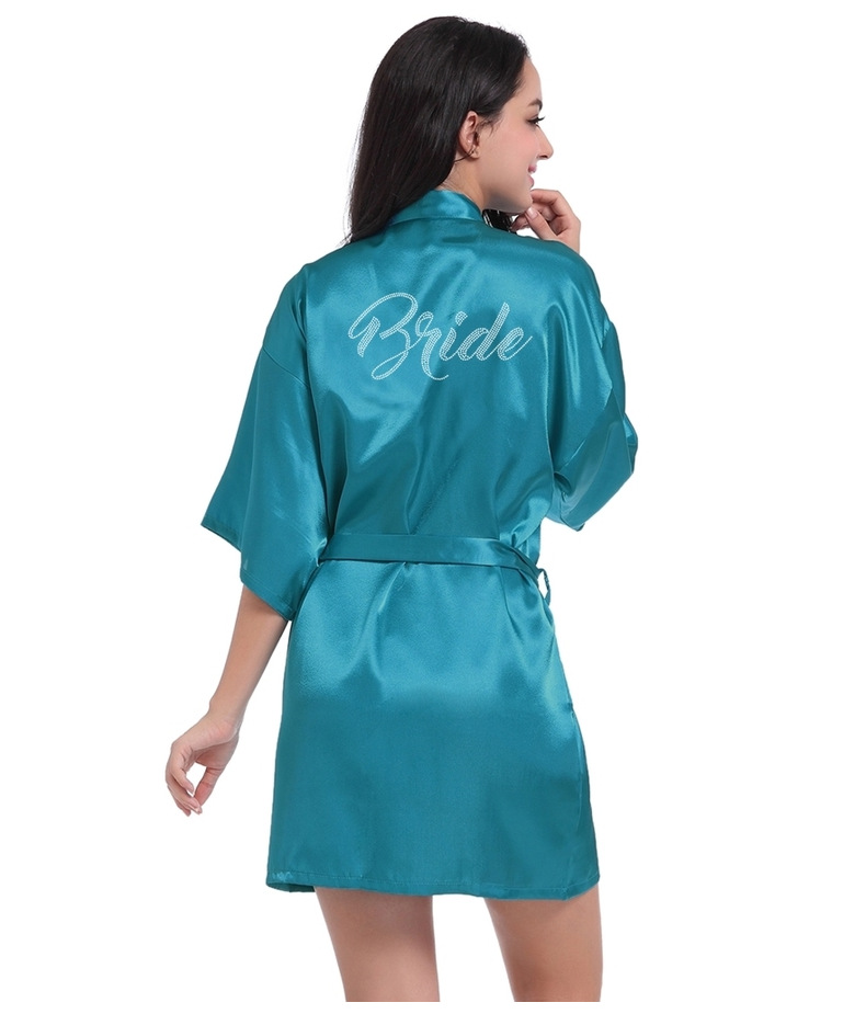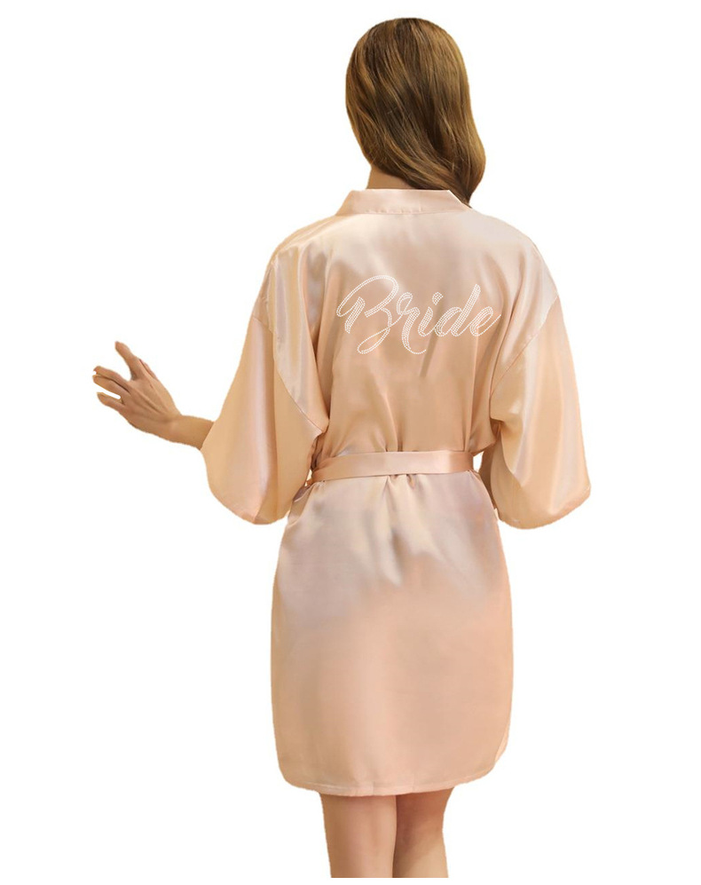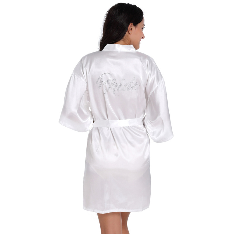 Кардиган-халат для невесты с декоративными стразами, летний тонкий свадебный утренний наряд с рукавами пять четвертей, свадебный халат из искусственного шелка.