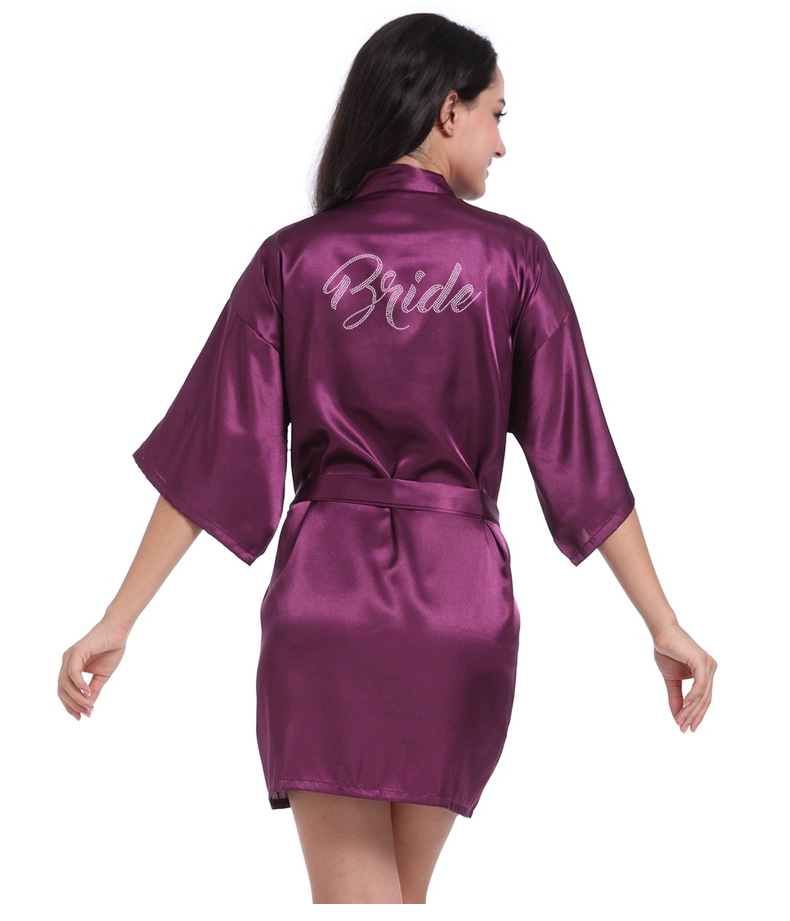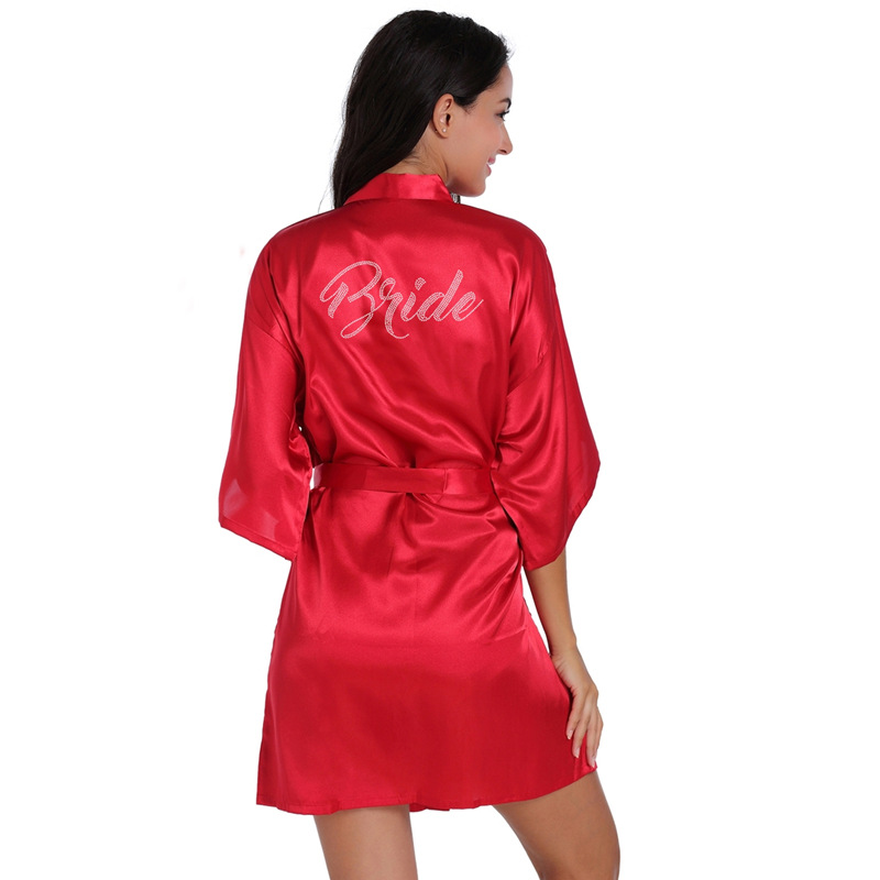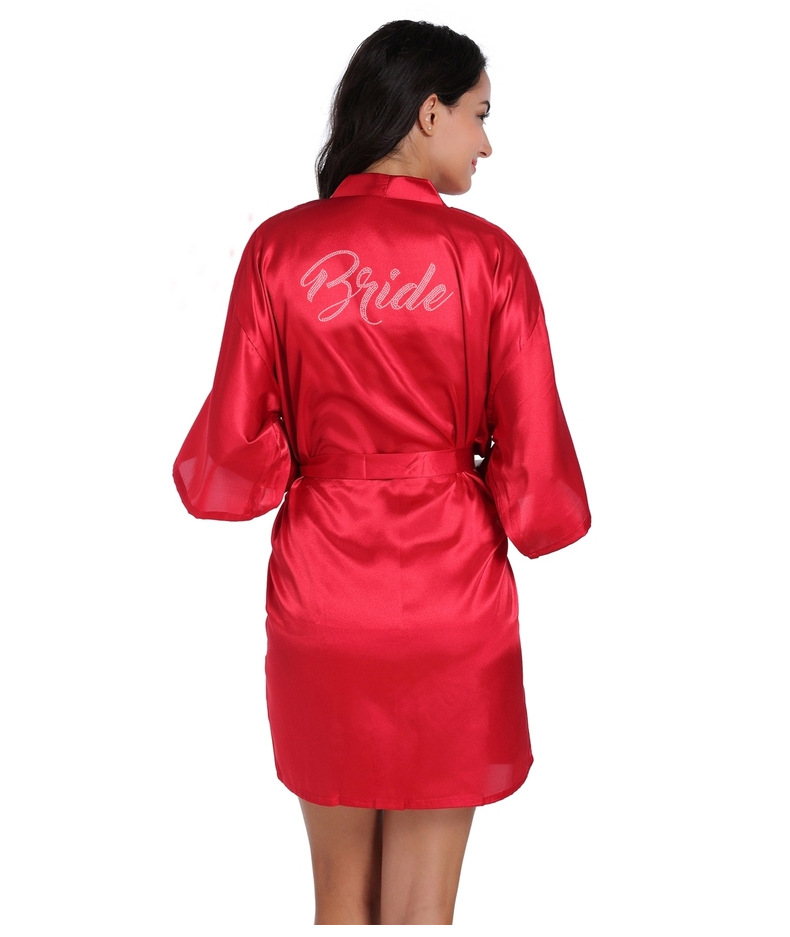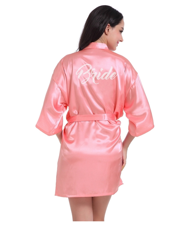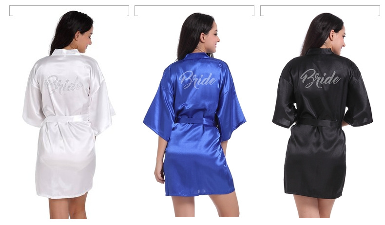 Кардиган-халат для невесты с декоративными стразами, летний тонкий свадебный утренний наряд с рукавами пять четвертей, свадебный халат из искусственного шелка.