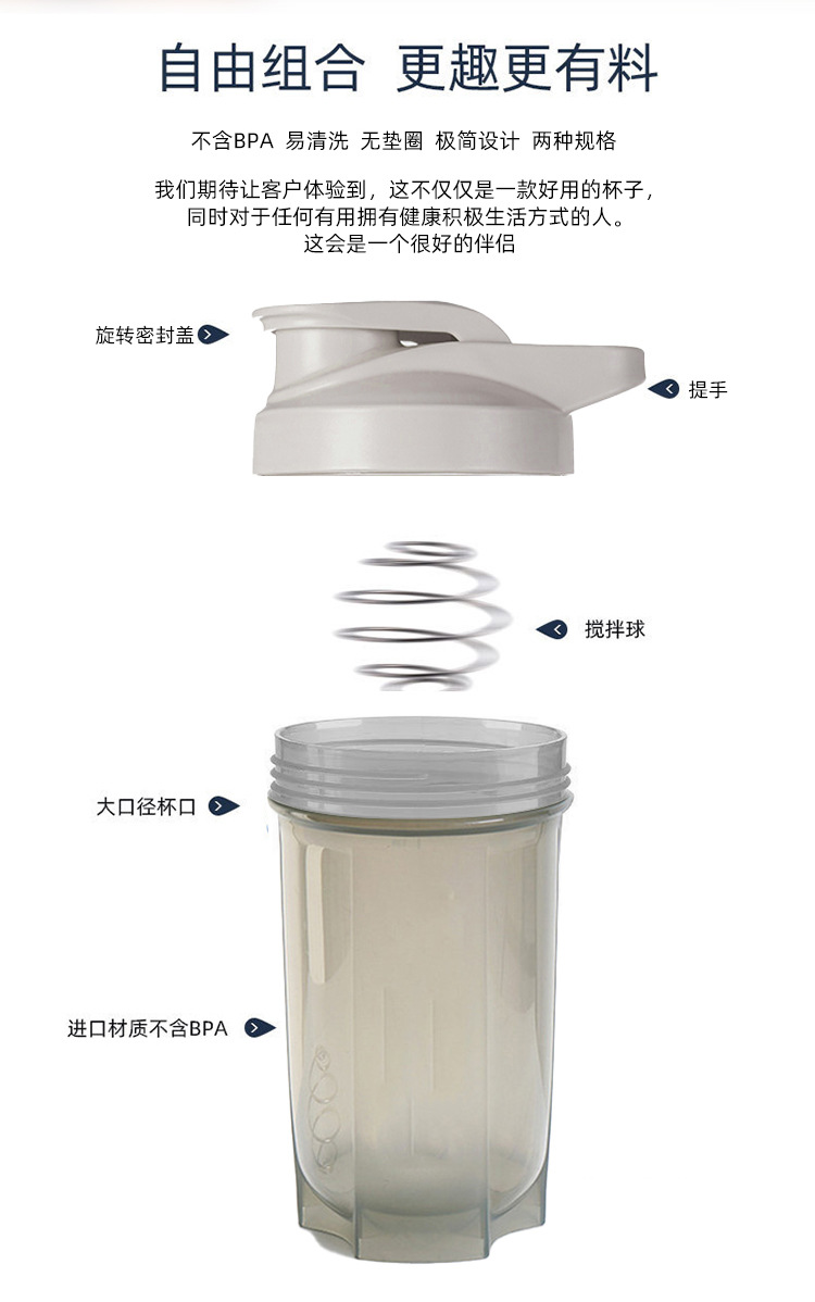 Фитнес-чашка Протеиновый порошок Shake Cup Наружная портативная чашка для смешивания Высокотемпературная устойчивая пластиковая чашка для воды большой емкости