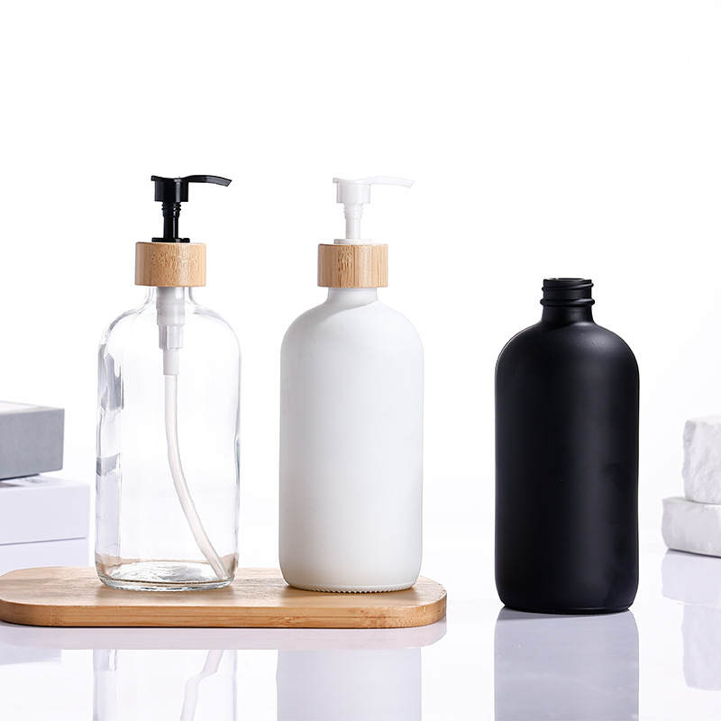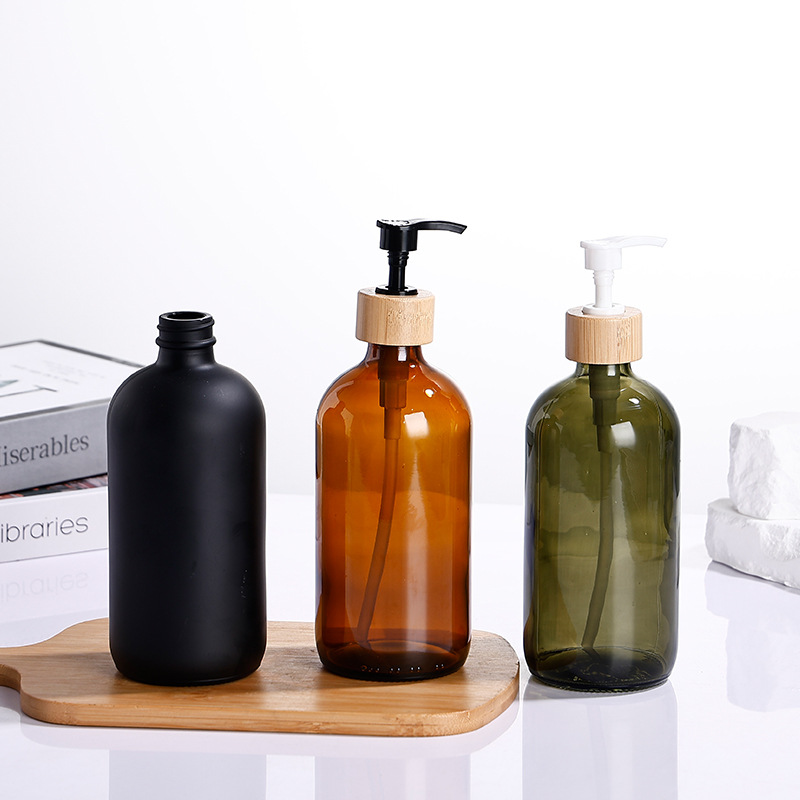 Оптовая продажа стеклянных флаконов для дезинфицирующего средства для рук объемом 500 мл с дозатором-помпой, флакон для геля для душа и лосьона для отелей (модель Boston)