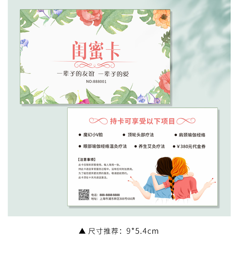 Салон красоты девушка карта Tuoke Card управление кожей Открытие мероприятия опыт работы с вышивкой визитной карточкой дизайн скидки на здоровье