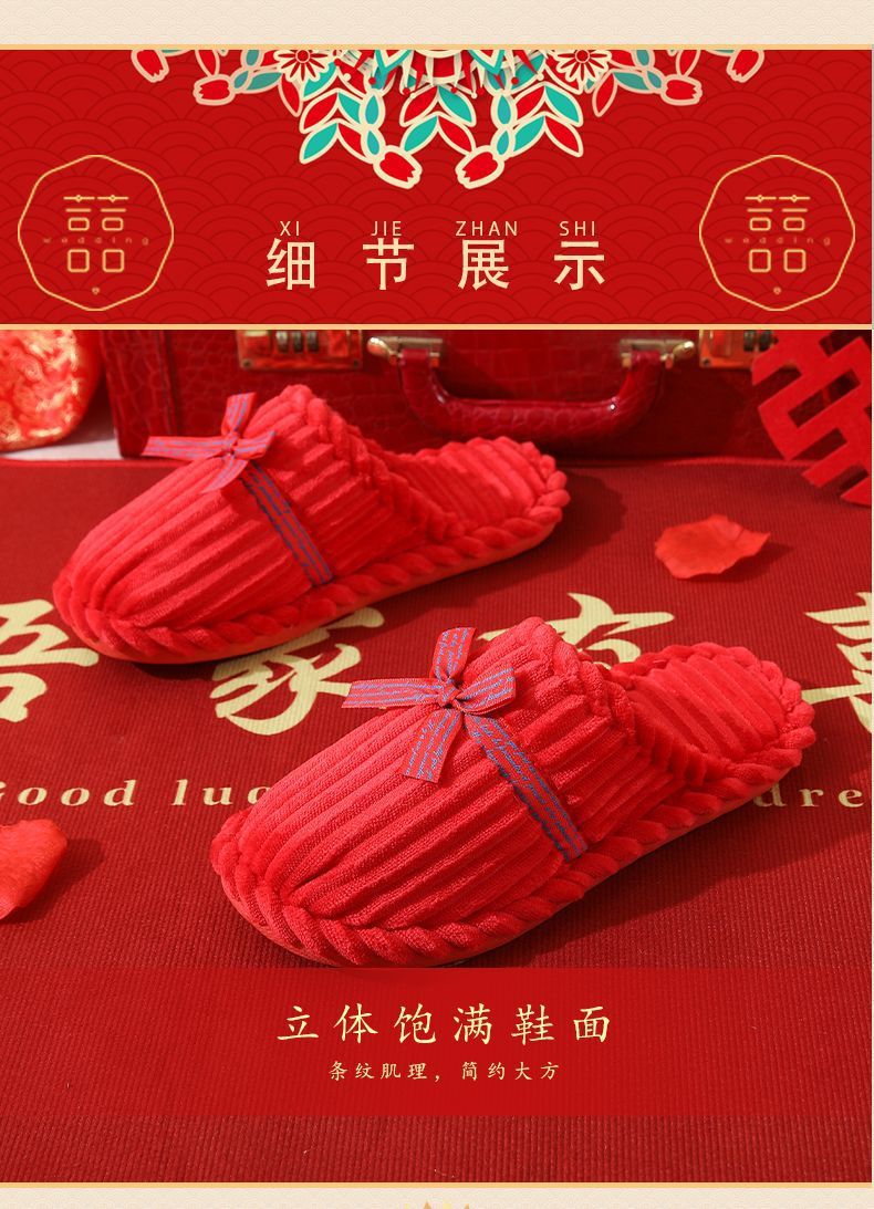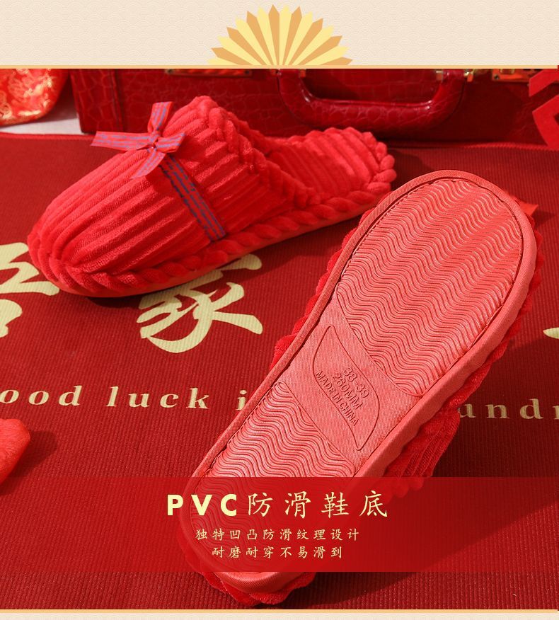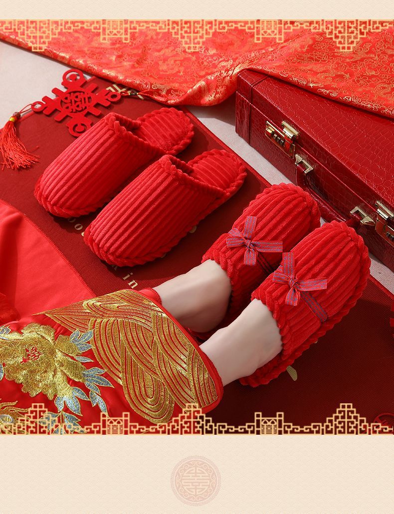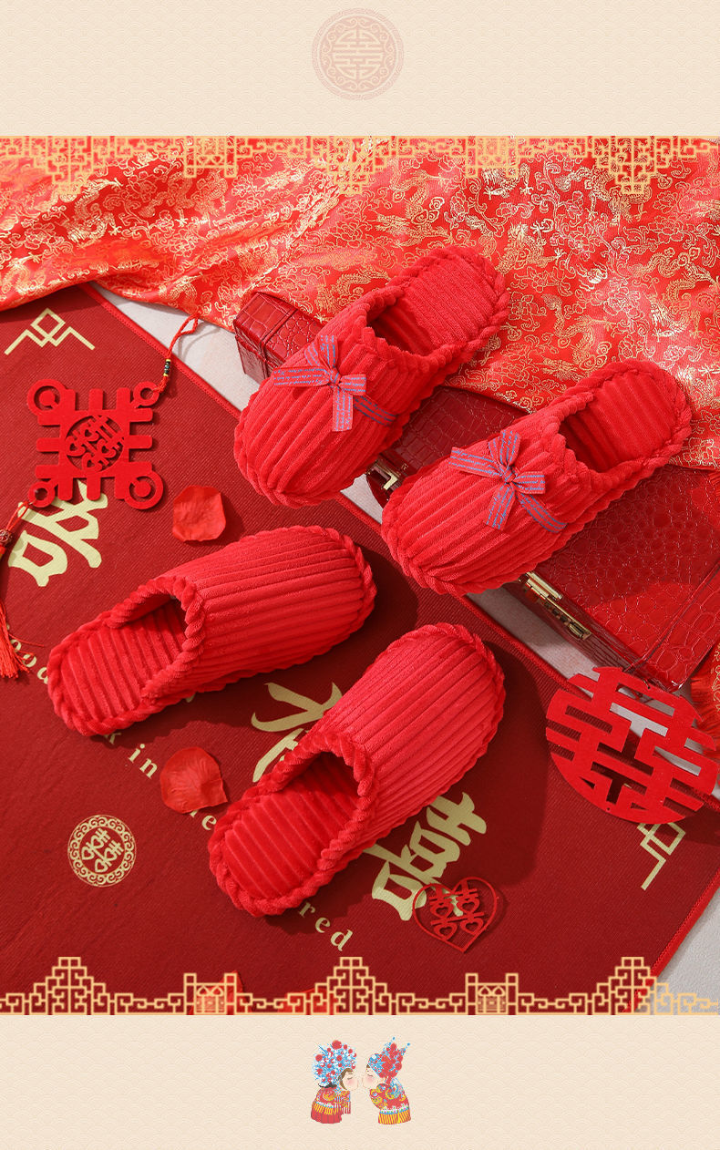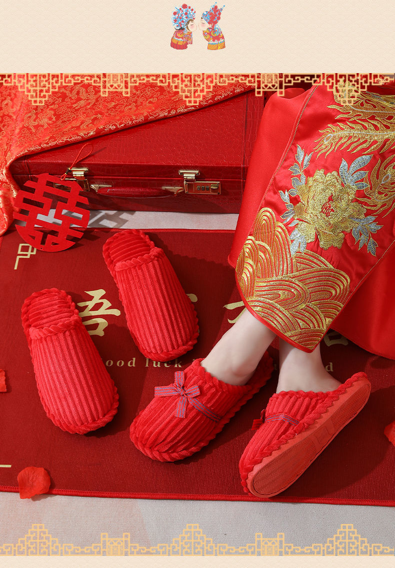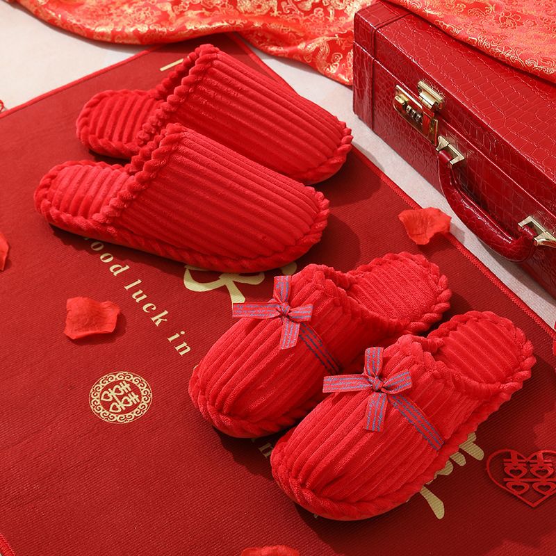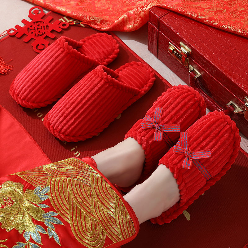 Свадебные тапочки Женские Свадебные праздничные красные Приданные Пара жениха и невесты Свадебные домашние Нескользящие тапочки для пар