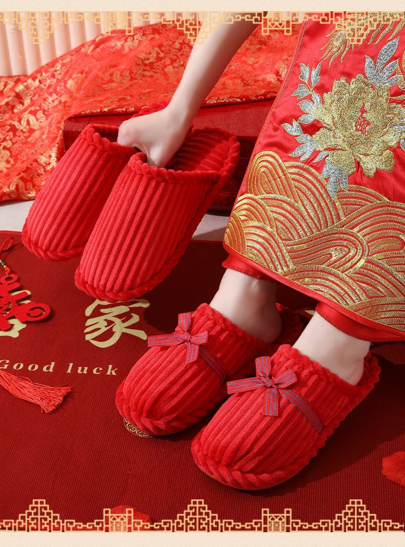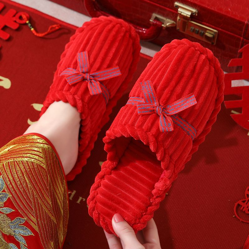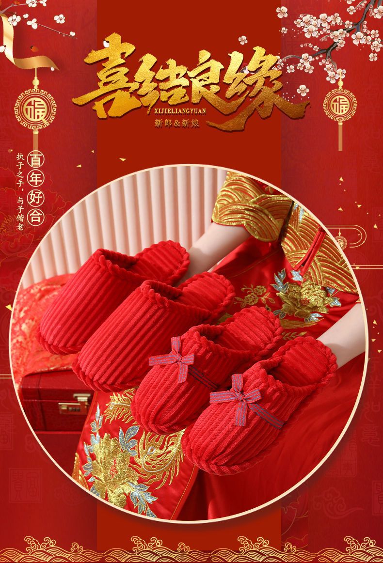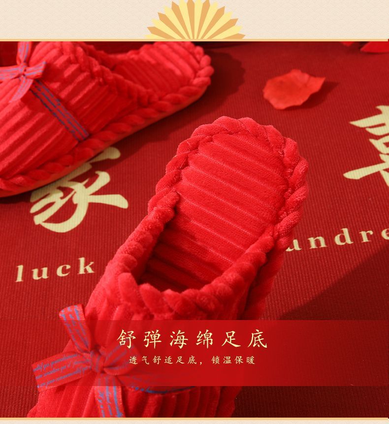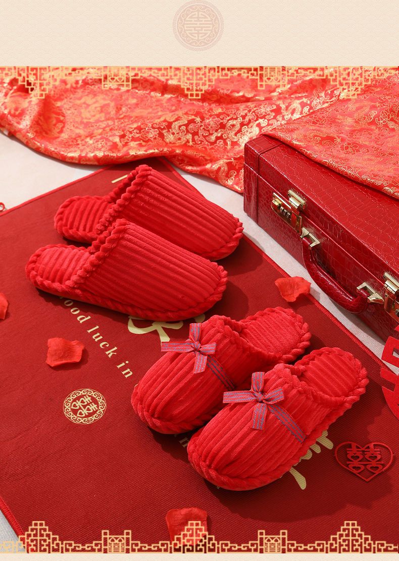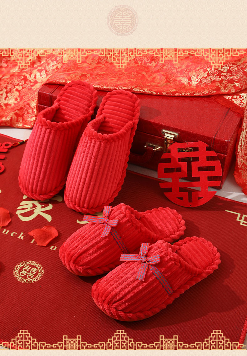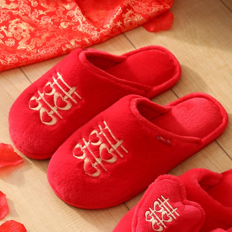 Свадебные тапочки Женские Свадебные праздничные красные Приданные Пара жениха и невесты Свадебные домашние Нескользящие тапочки для пар