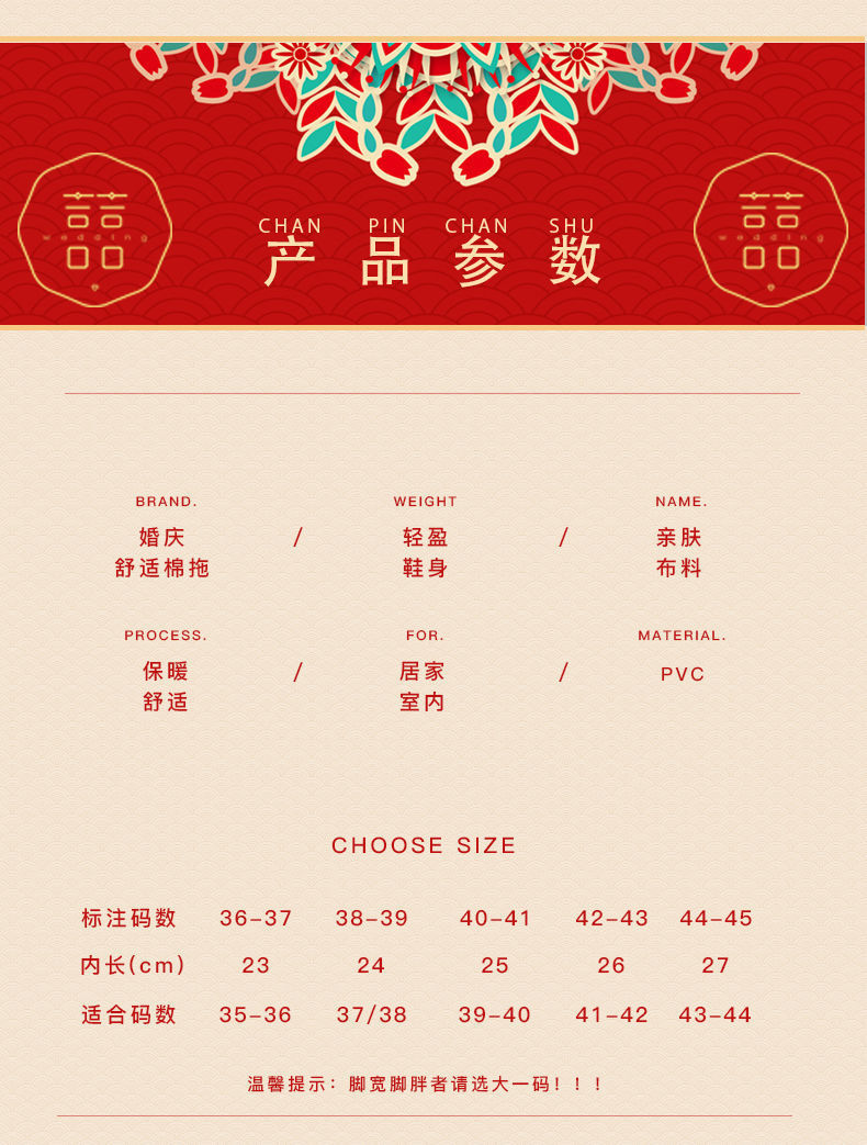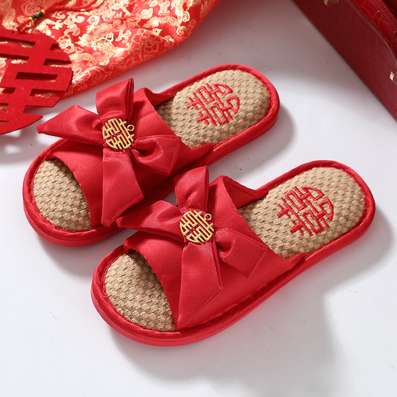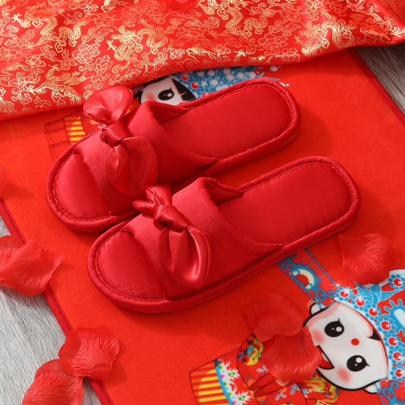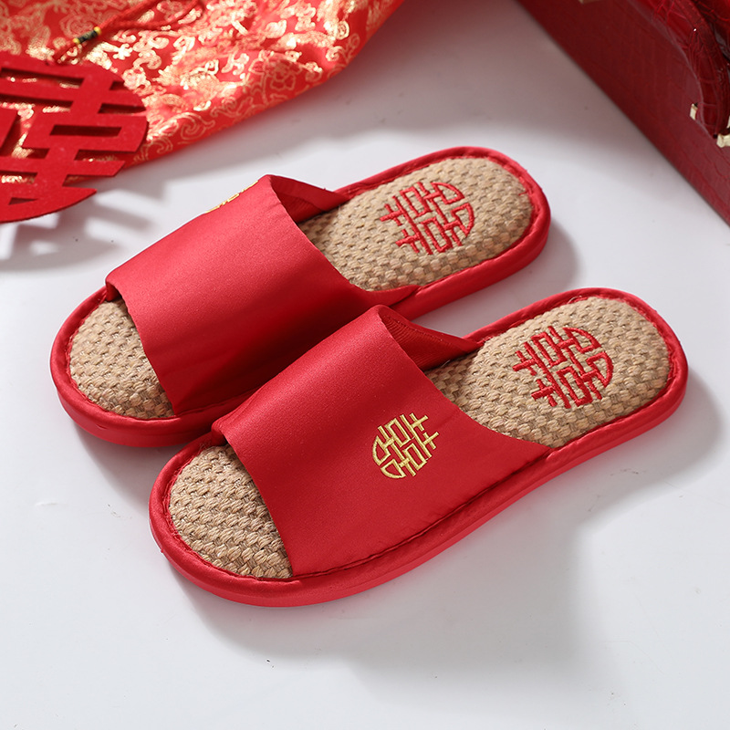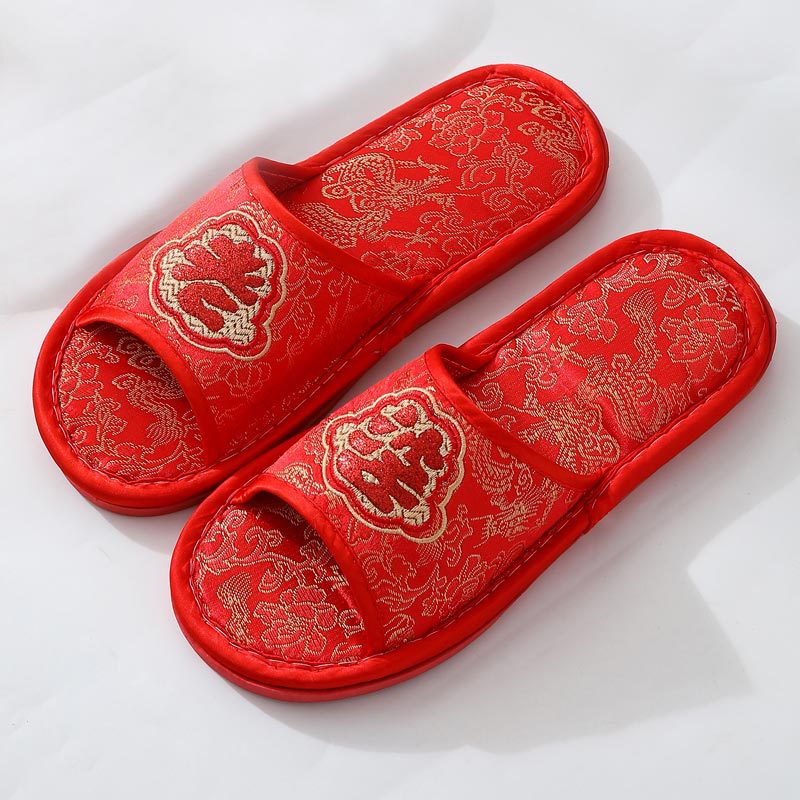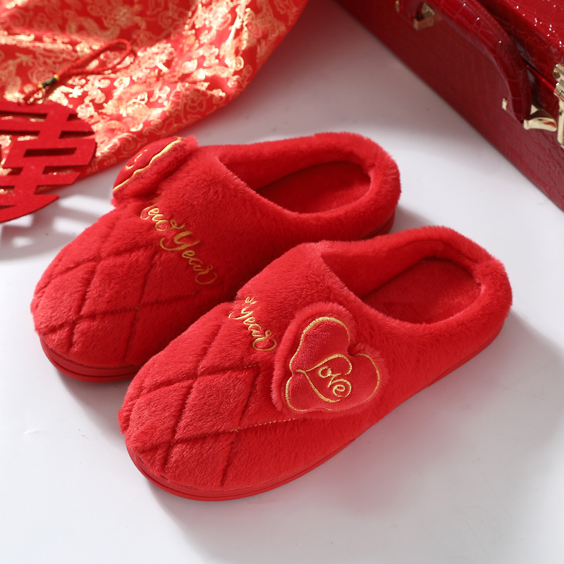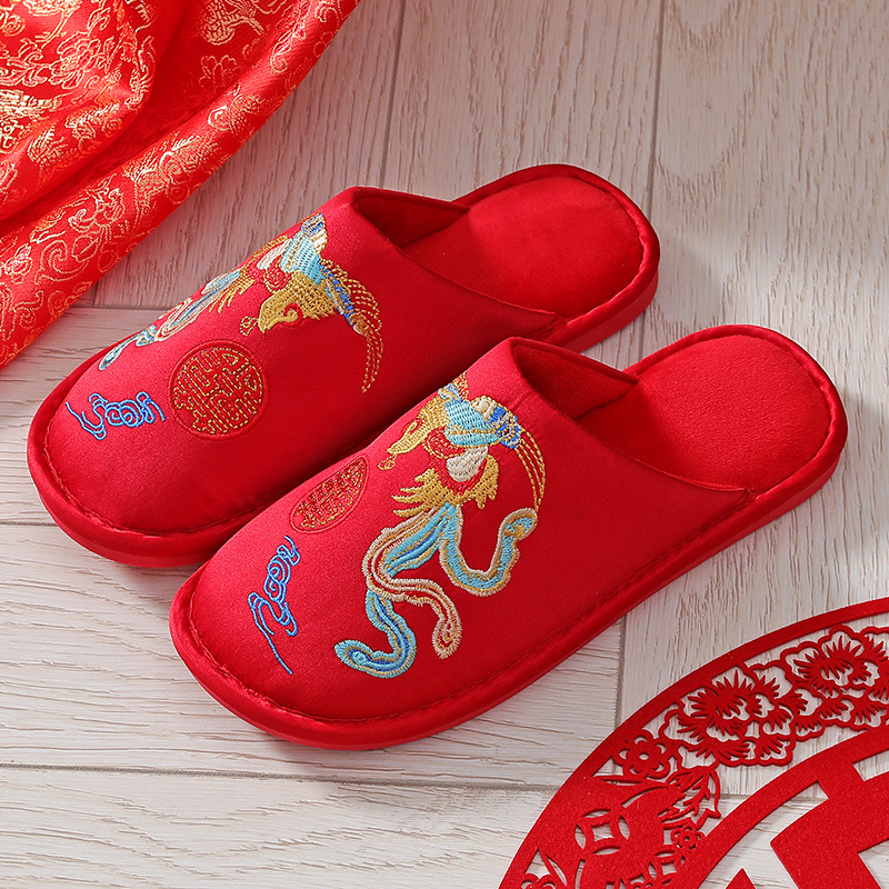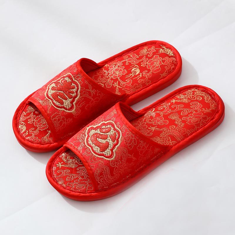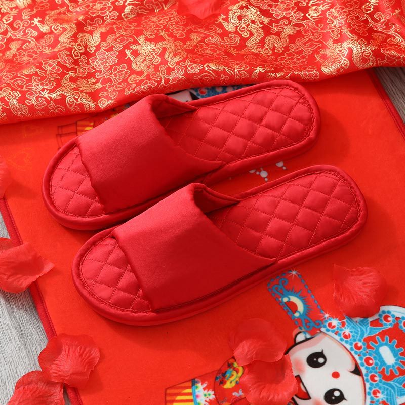 Свадебные тапочки Женские Свадебные праздничные красные Приданные Пара жениха и невесты Свадебные домашние Нескользящие тапочки для пар