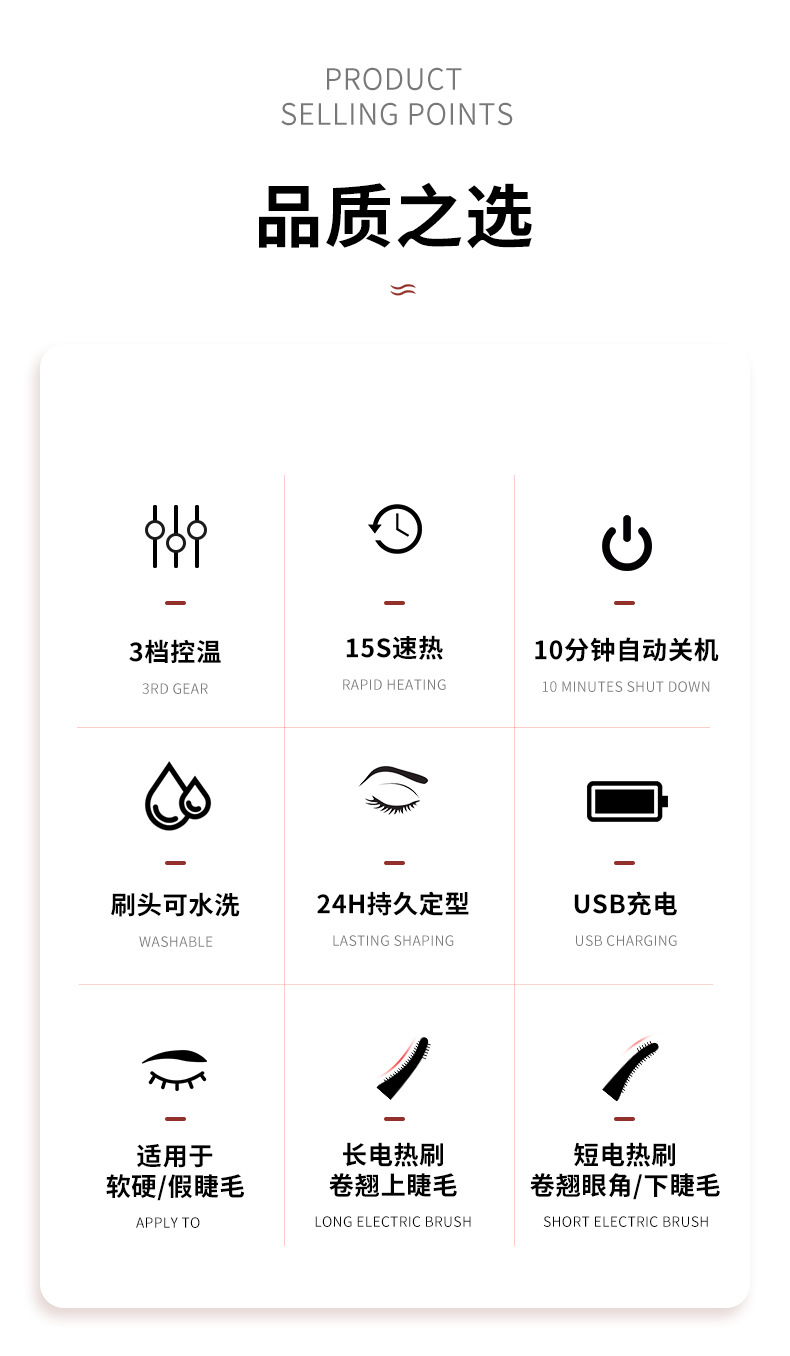 - 【防烫】热线不会直接接触睫毛,梳子部分采用硅胶材料覆盖,不会直接接触睫毛或肌肤,无需担心烫伤。