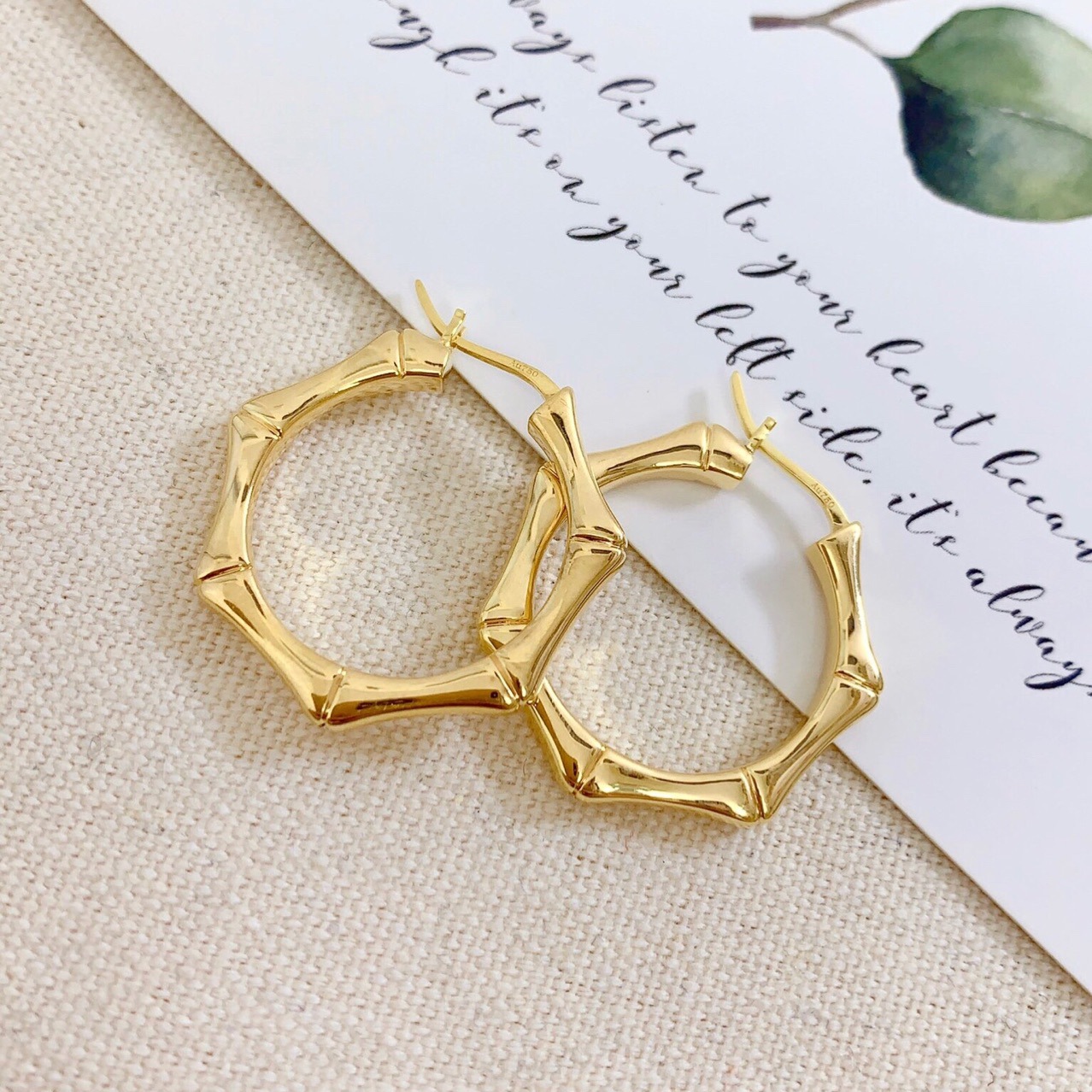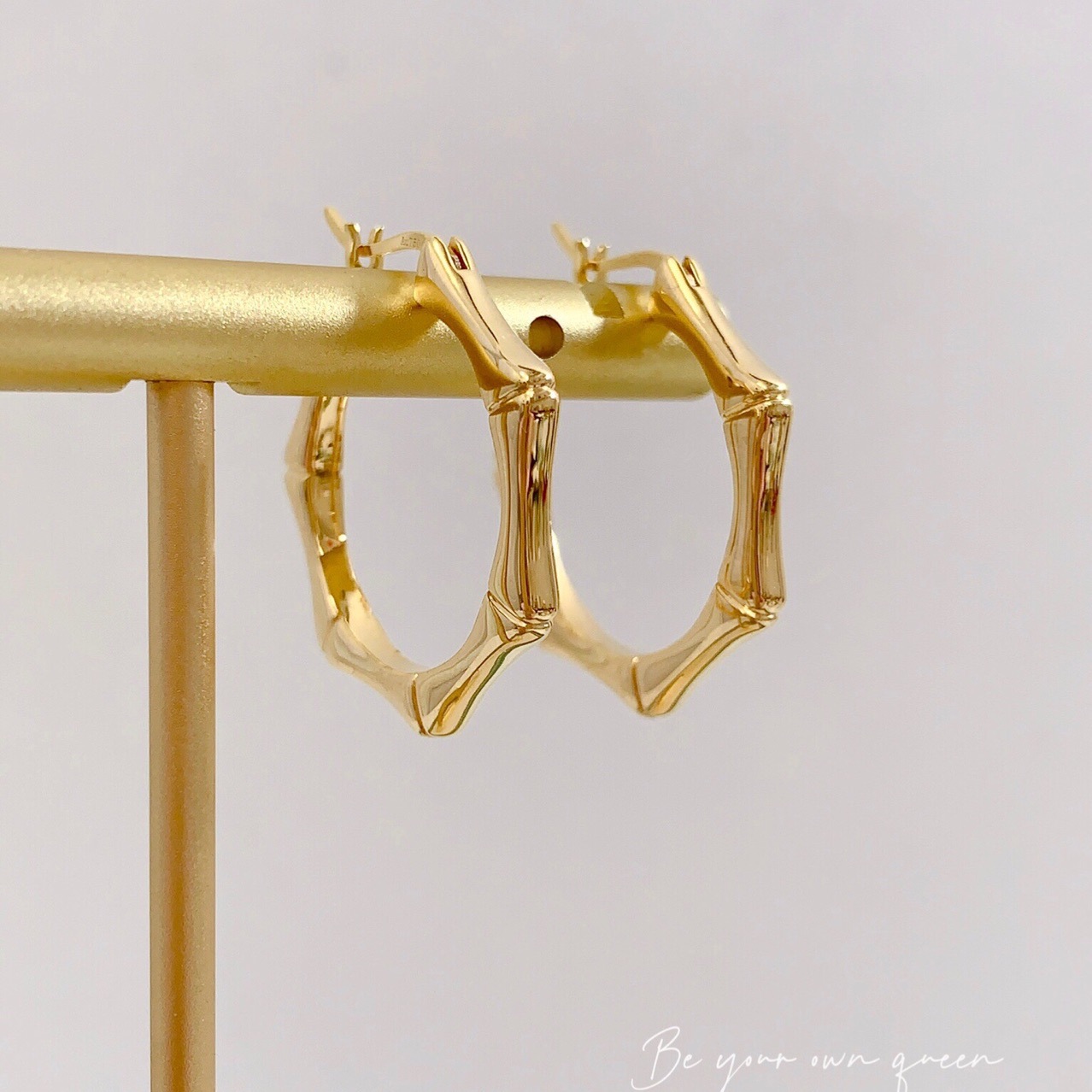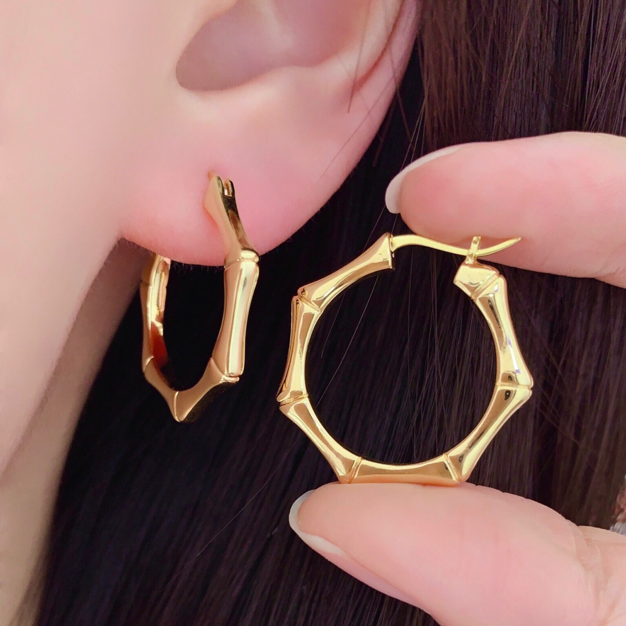 Ehao ювелирные изделия 18K Золото Бамбук уха пряжки женщин Китайский стиль уха пряжки