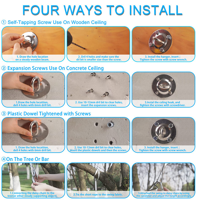 产品清单:尼龙秋千布+连接绳+延长带+8号钢锁扣+说明书(不含固定圆盘)