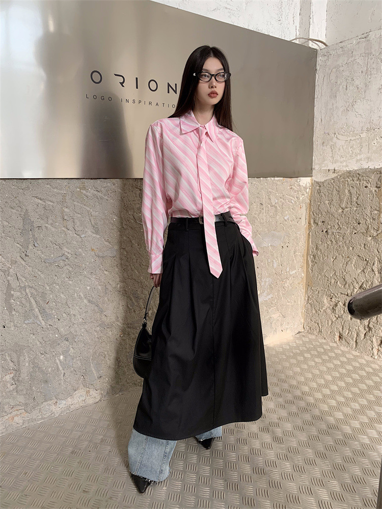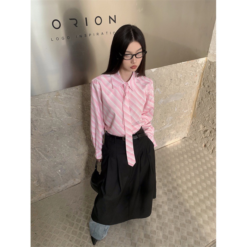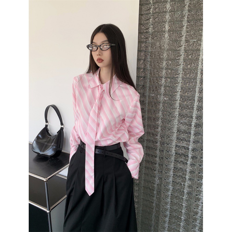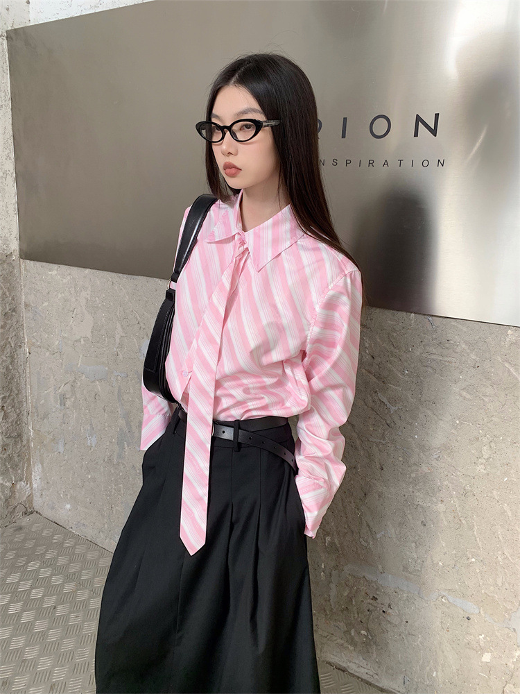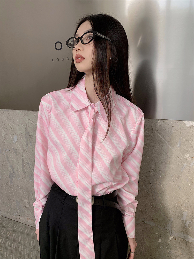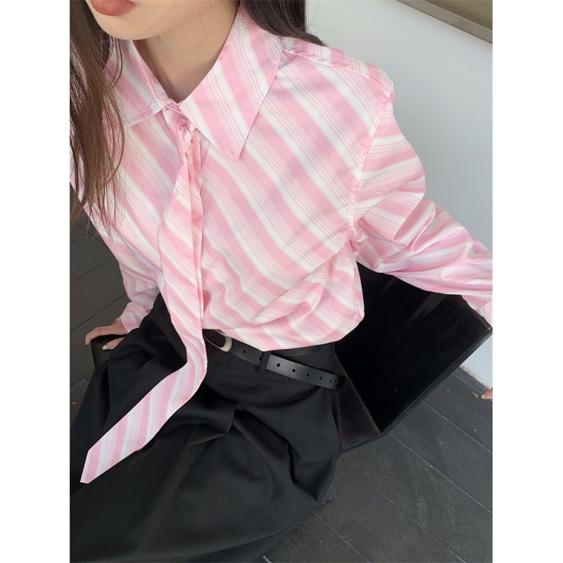 Розовая рубашка в полоску с галстуком Внутри