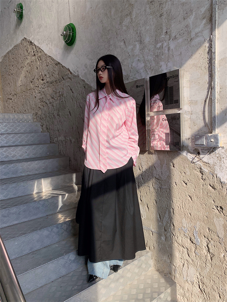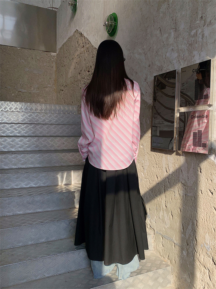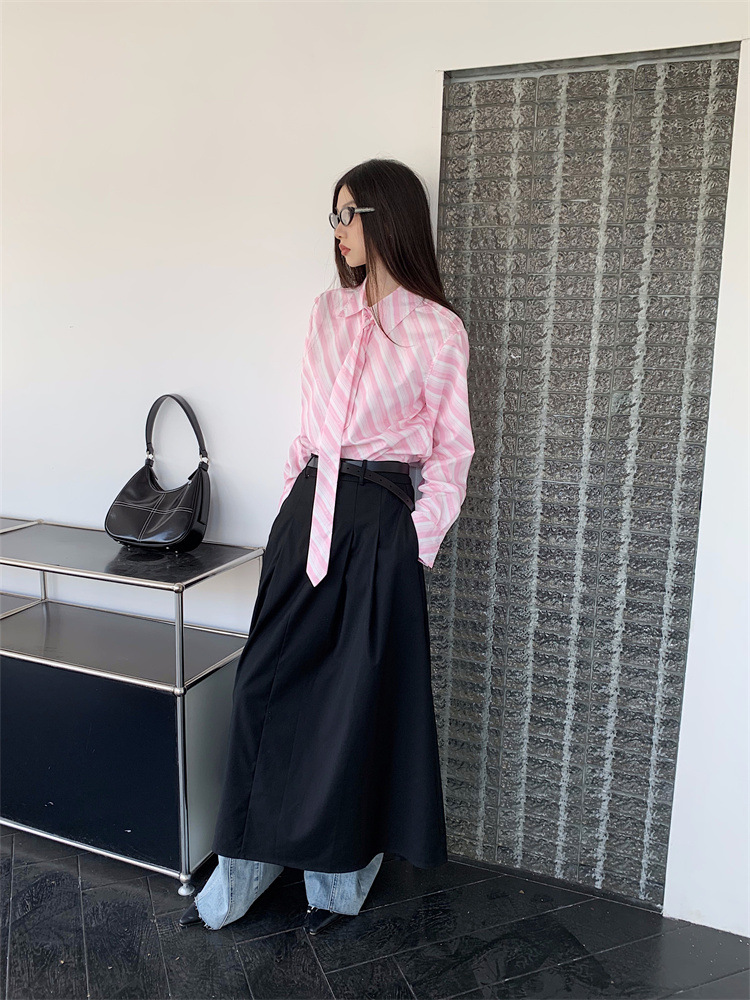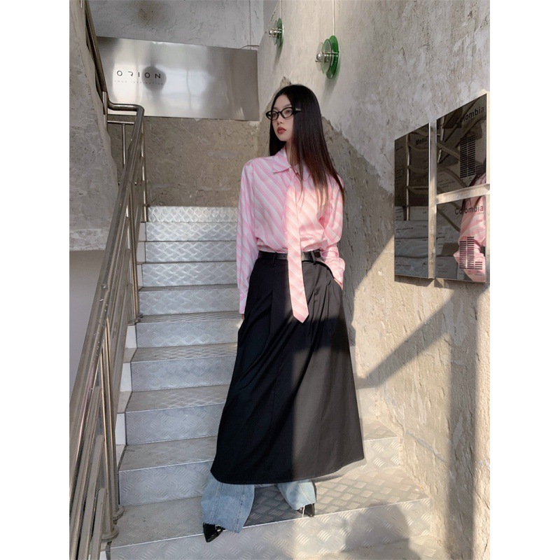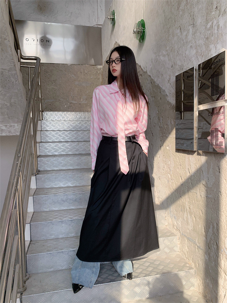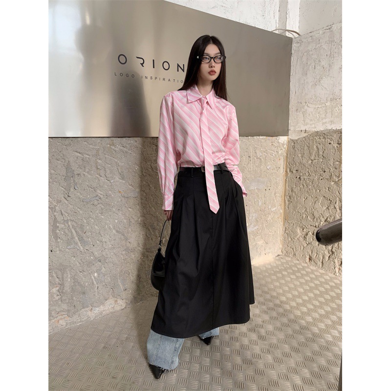 Розовая рубашка в полоску с галстуком Внутри