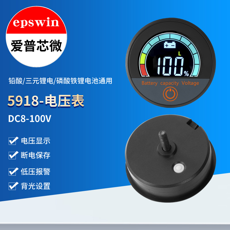 Круглый измеритель мощности 8-100 В двухпроводной Вольтметр постоянного тока 12 В свинцово-кислотная литиевая батарея Универсальная головка с цифровым дисплеем