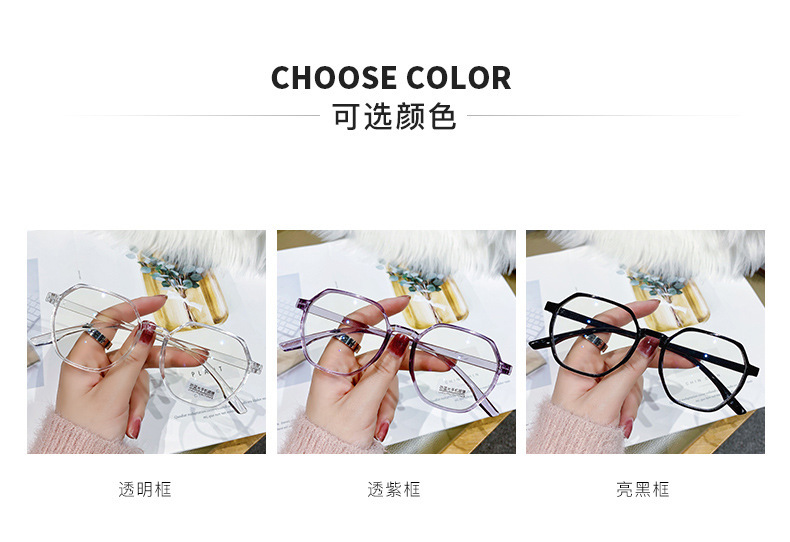 Прозрачный Пурпур; Яркая чернота; Прозрачная белизна; Фиолетовый розовый; розовый; Прозрачный серый; Темно-фиолетовый (большая круглая оправа)