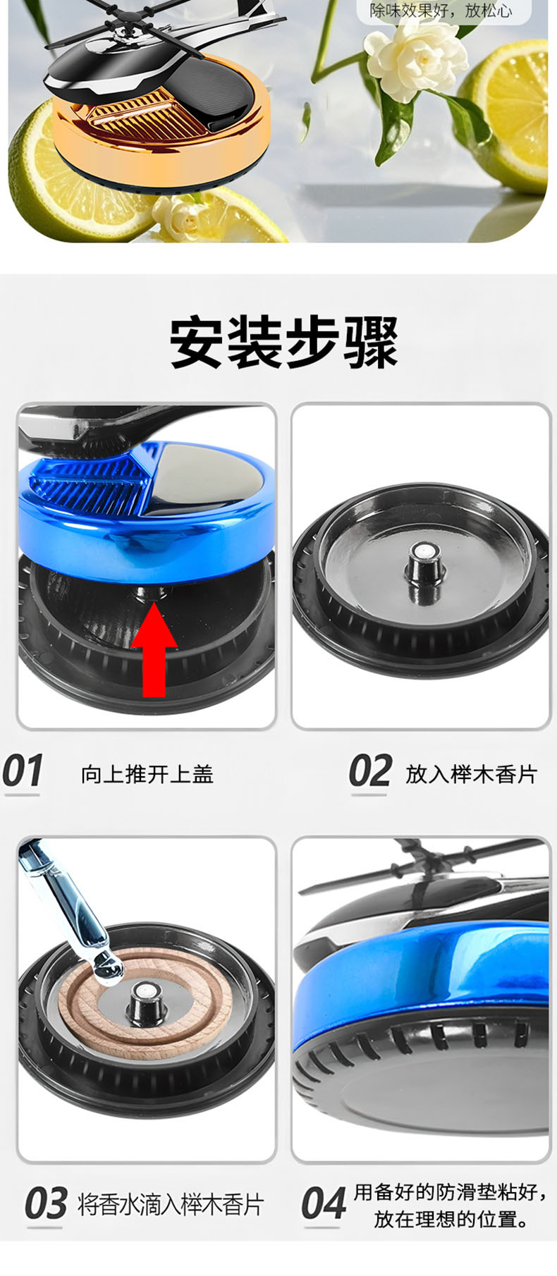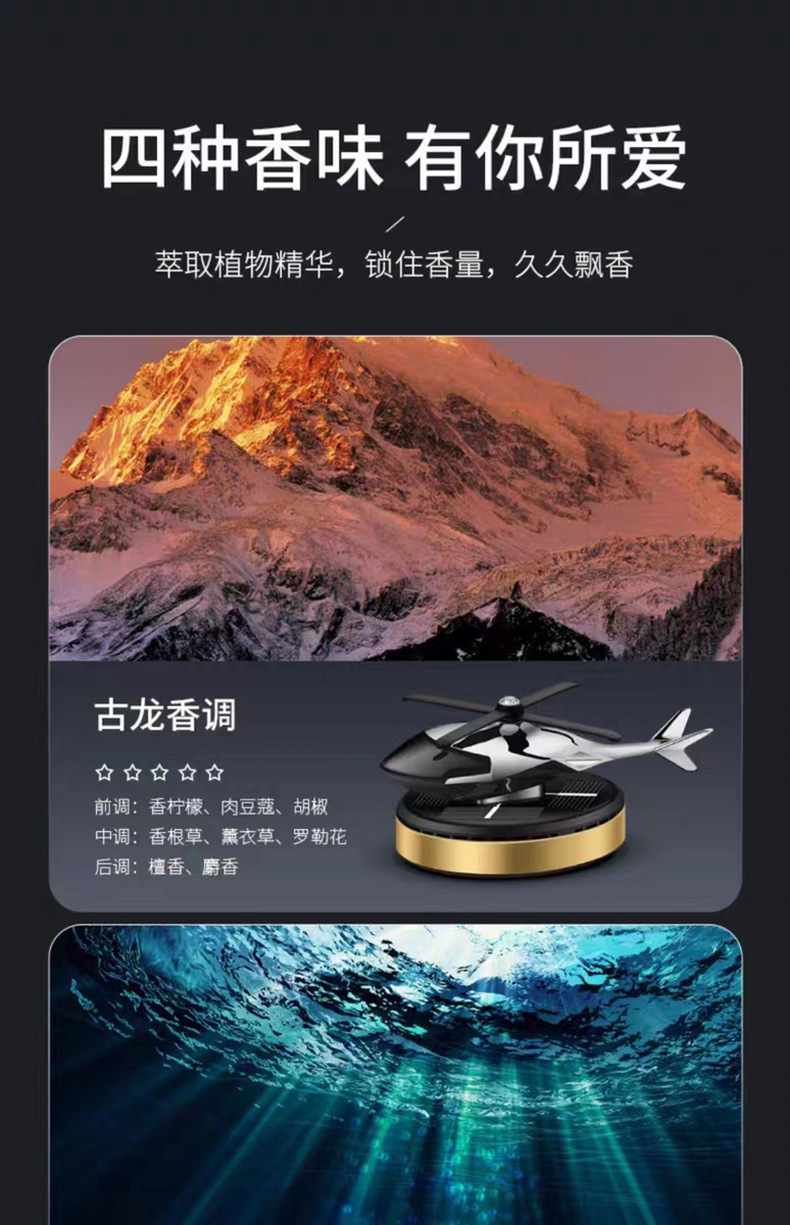 Солнечный вращающийся автомобильный ароматизатор-вертолет для приборной панели, креативный держатель для ароматов, мужские автомобильные аксессуары, трансграничная продажа