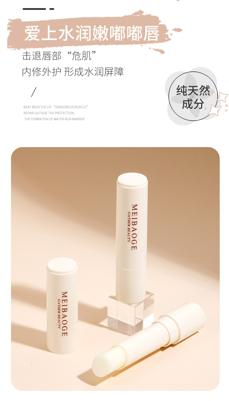 Увлажняющий бальзам для губ MEIBAOGE: увлажняет, предотвращает сухость, не оставляет жирных следов, подходит как мужчинам, так и женщинам, в наличии, содержит вазелин.