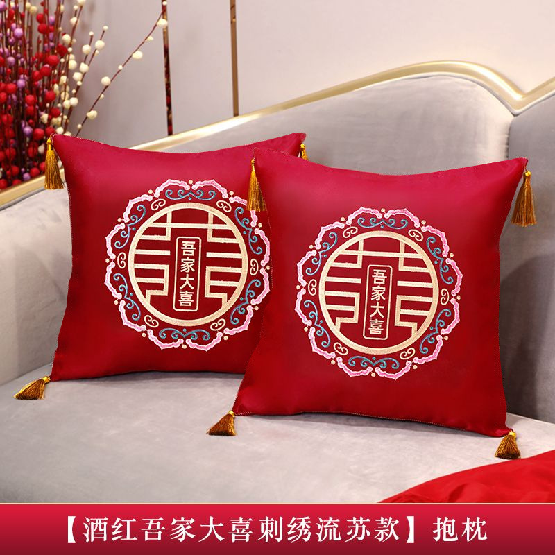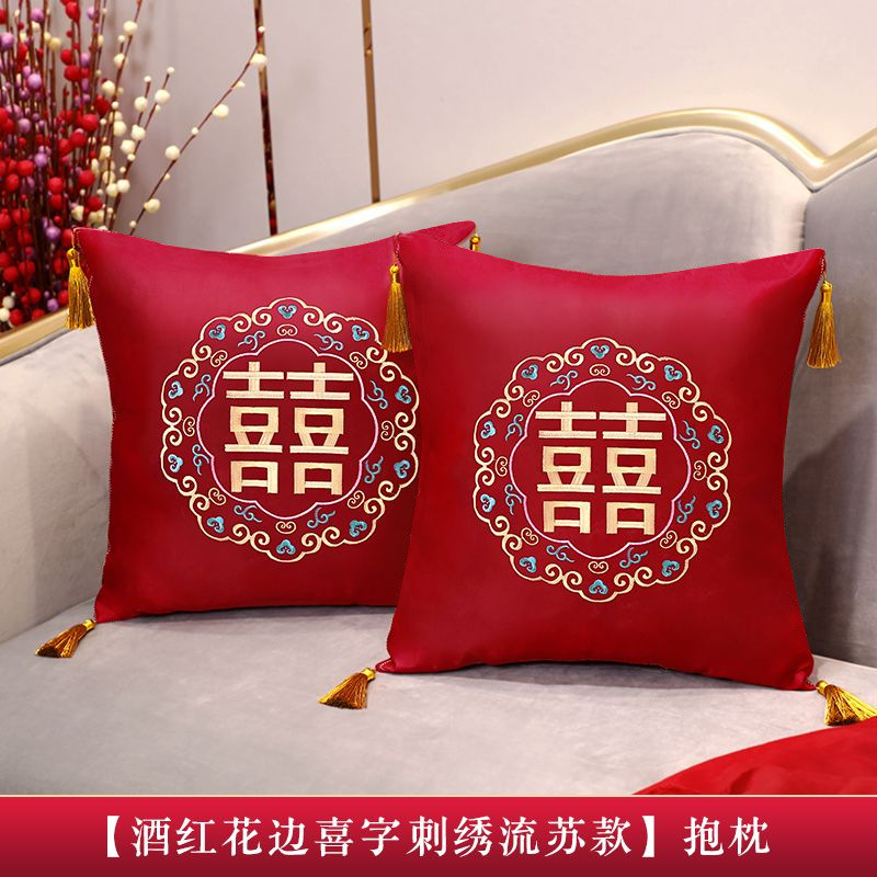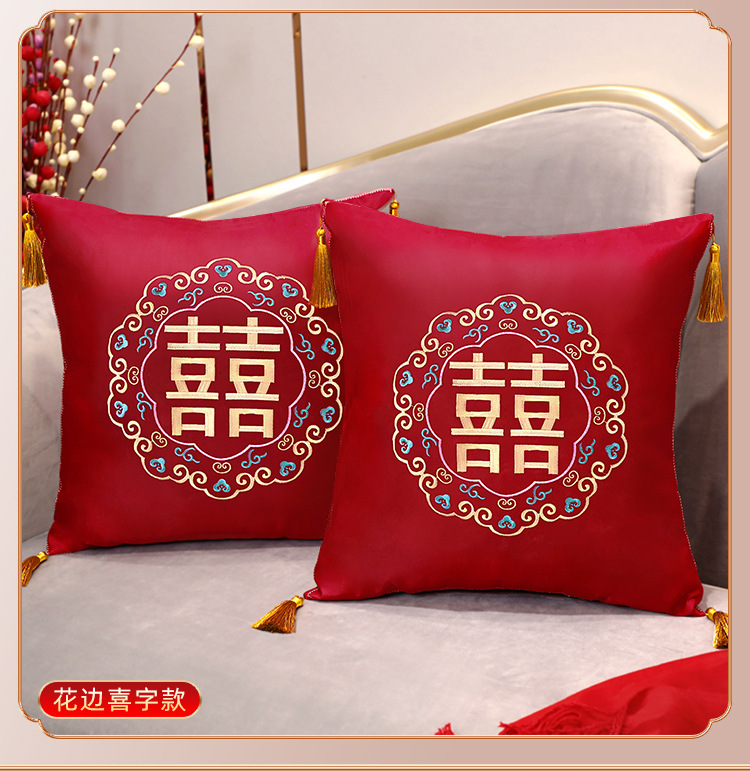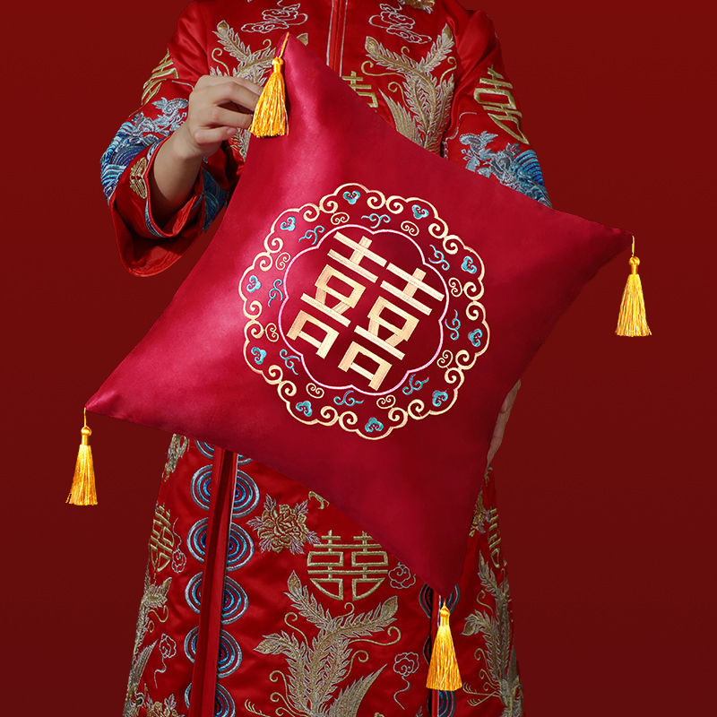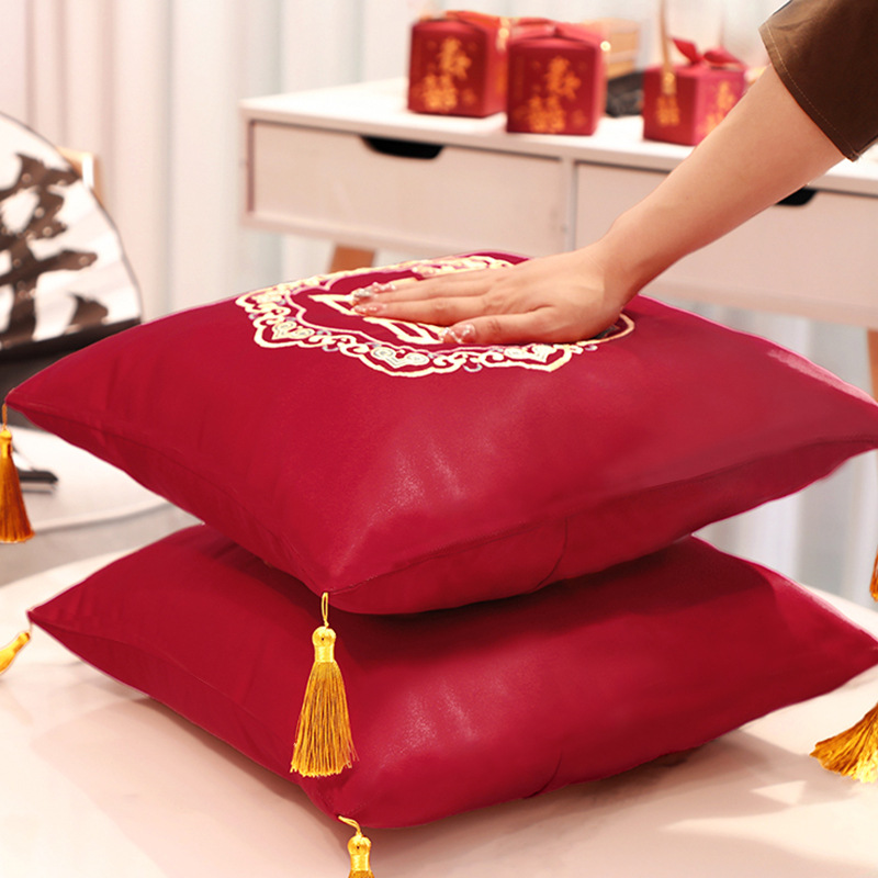 Свадебная Подушка Пара Свадебная подушка для комнаты красный двойной счастье свадебный диван для гостиной вышивка крестиком спинка подушка