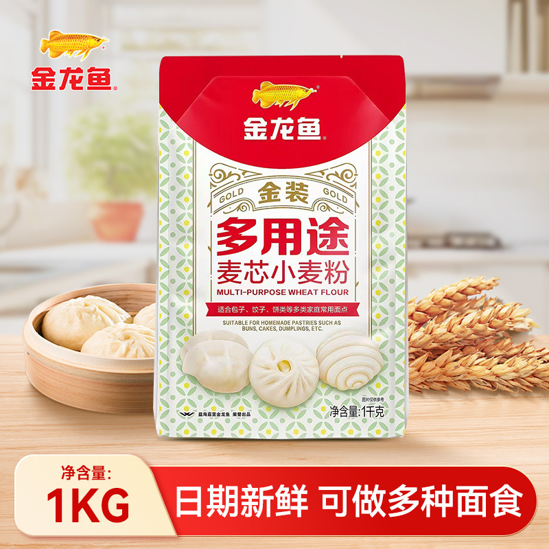 Golden Dragon Fish Многоцелевая пшеничная сердцевина Пшеничная мука 1 кг Бытовая мука Пельмени Мука на пару Хлеб Булочки для выпечки лапши