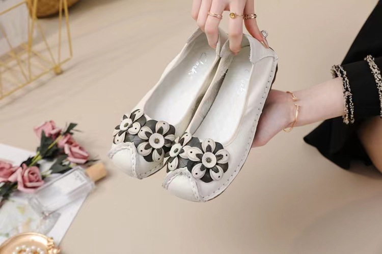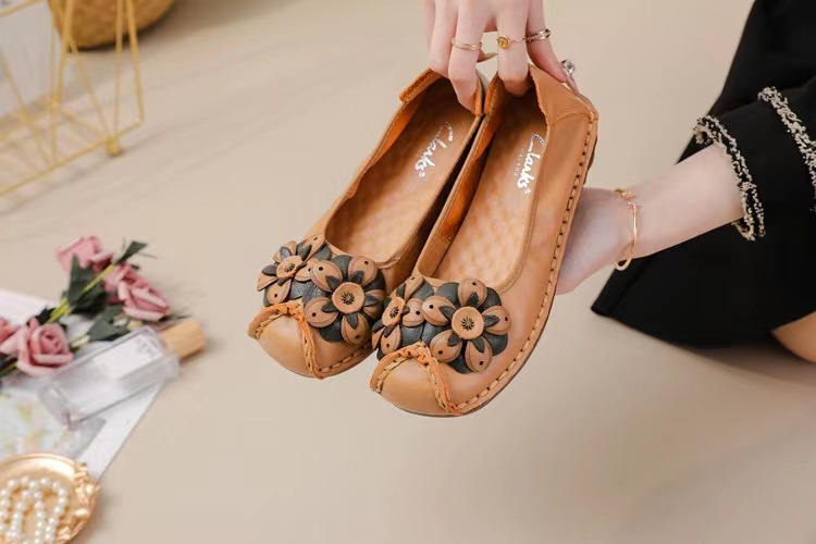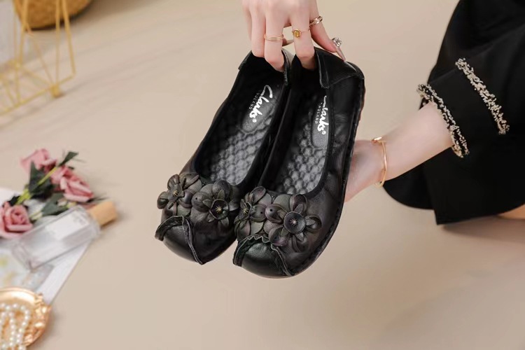 Новинка 2025, обувь для мам из воловьей кожи первого слоя, удобная повседневная модная обувь на танкетке с нескользящей мягкой подошвой и цветочным узором