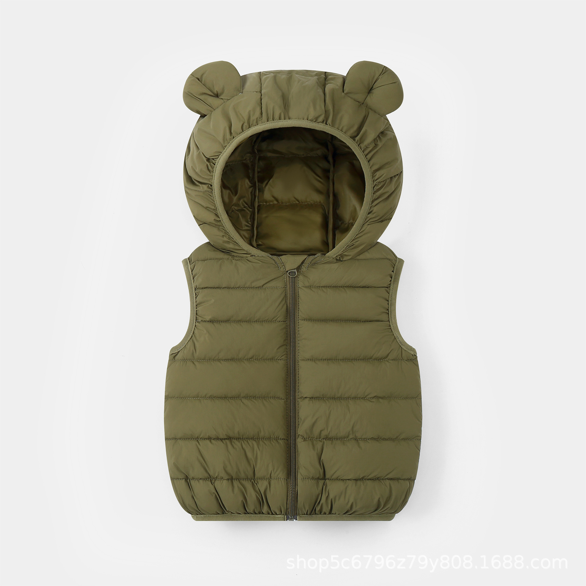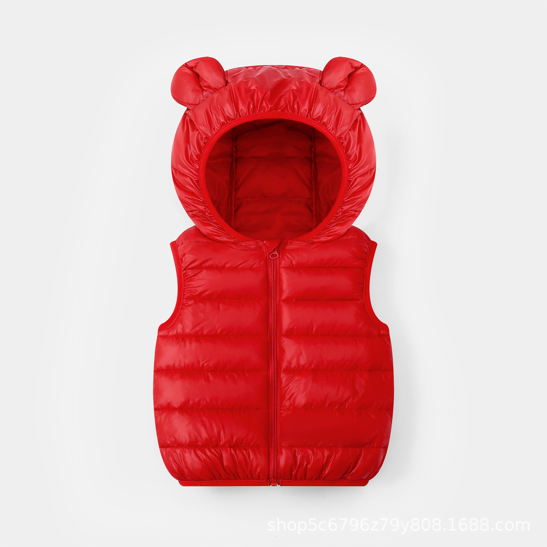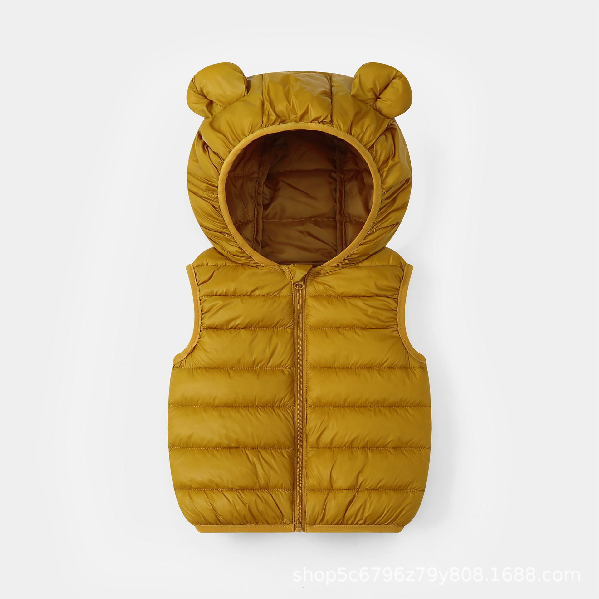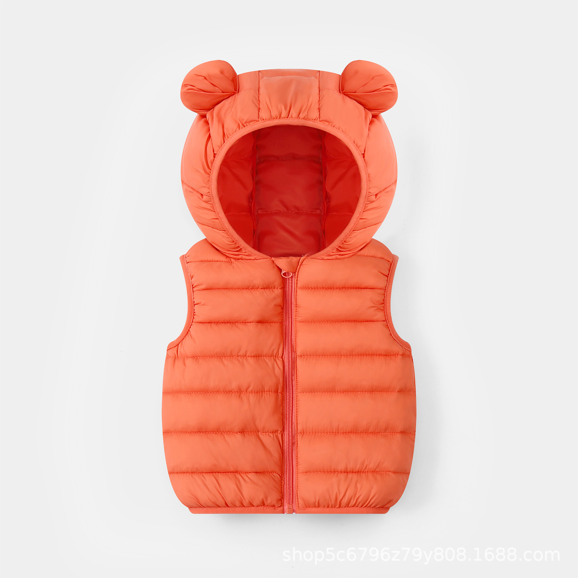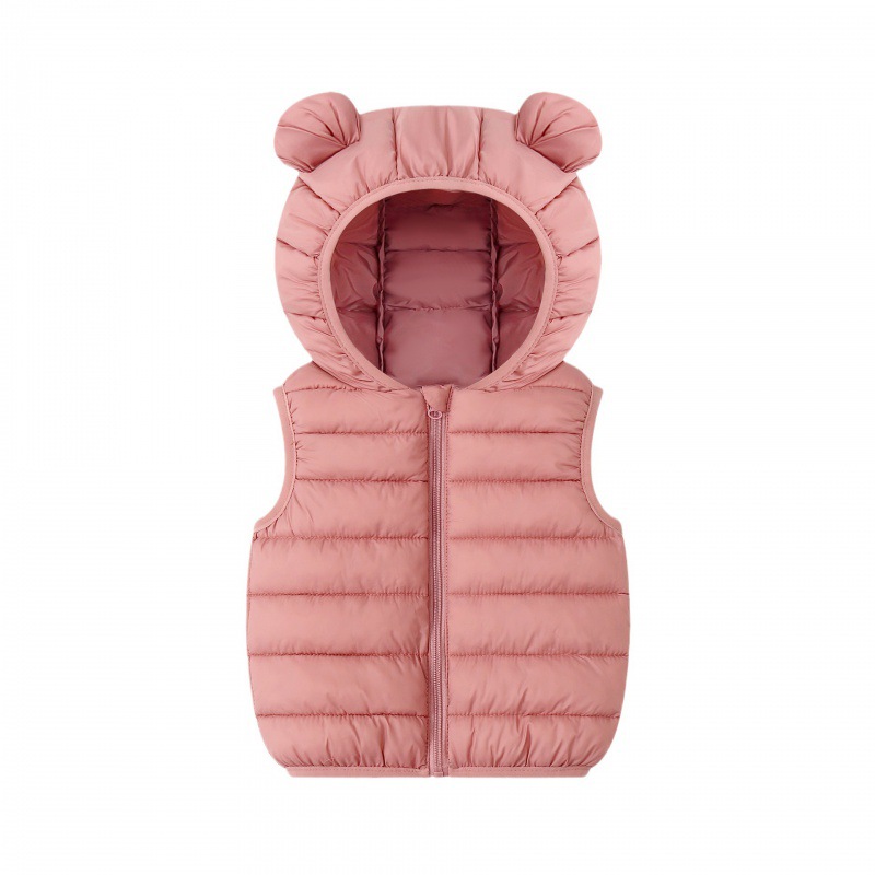 Новый детский весенне-осенний зимний однотонный пуховый жилет с капюшоном для мальчиков и девочек, детская конфетная Милая легкая теплая одежда