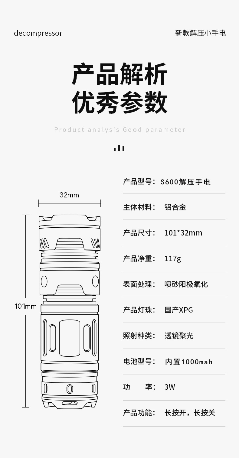 S600 серебристый-декомпрессионный фонарик; S600 черный-декомпрессионный фонарик