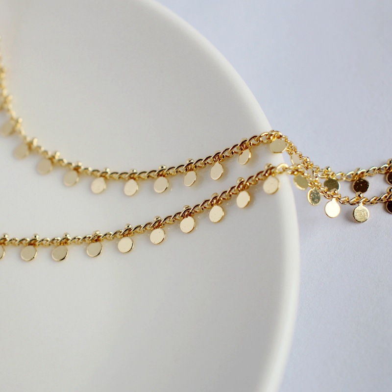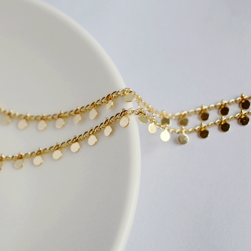 Двухслойные аксессуары позолоченная вставка в виде боковой цепочки из 14-каратного золота, цепочка ручной работы, ожерелье из материала своими руками со сложенным браслетом
