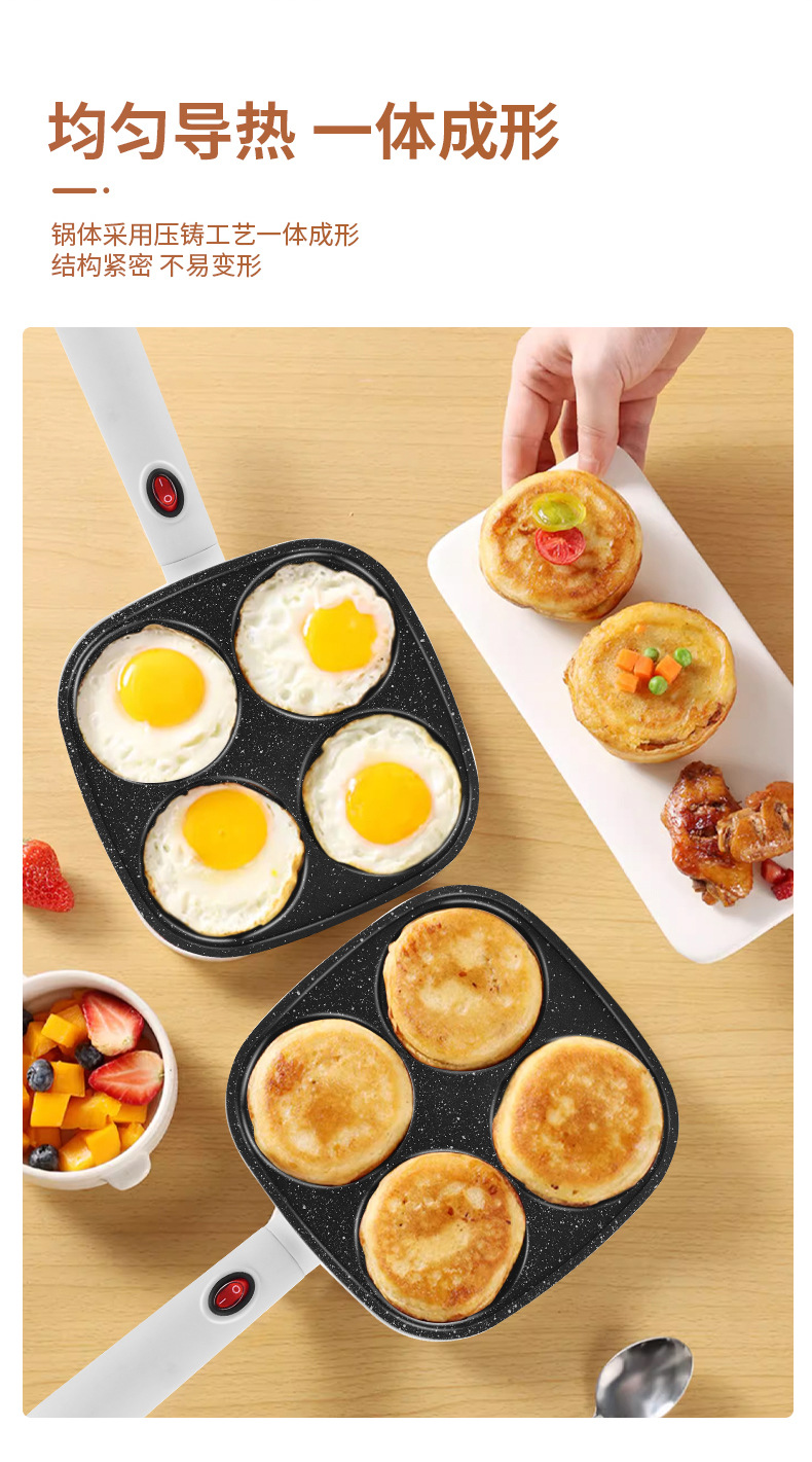 Сковорода для жареных яиц с 4 отверстиями Машина для бургеров Meat Fort Artifact с плоским дном и антипригарным покрытием Электрическая сковорода для торта Бытовая сковорода для жареных яиц Сковорода для завтрака Яичные клецки