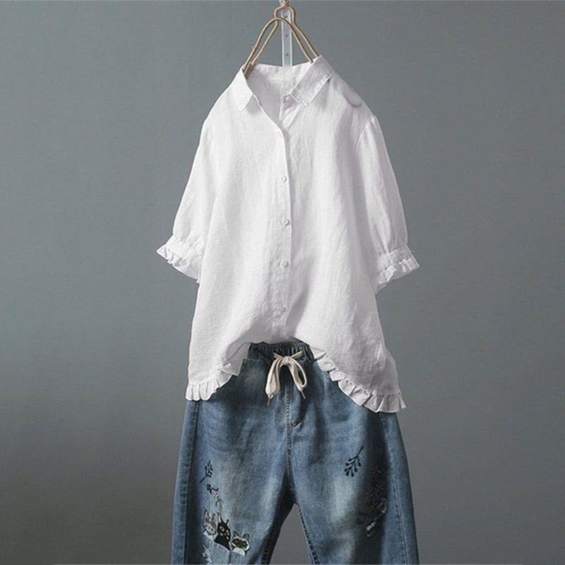 Большое количество спотовых европейских и американских внешнеторговых женщин Amazon AliExpress хлопок и конопля повседневная однобортная рубашка с короткими рукавами