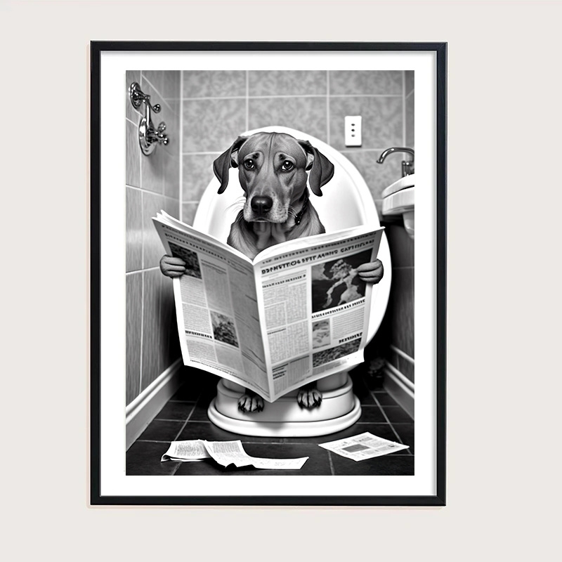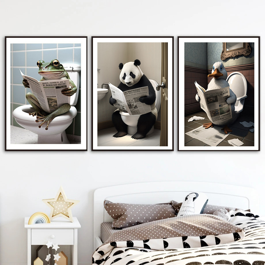 Ванная комната Юмор животных украшения стены медведь собака Тигр сидит на туалете чтение газеты искусство печатных холст живопись