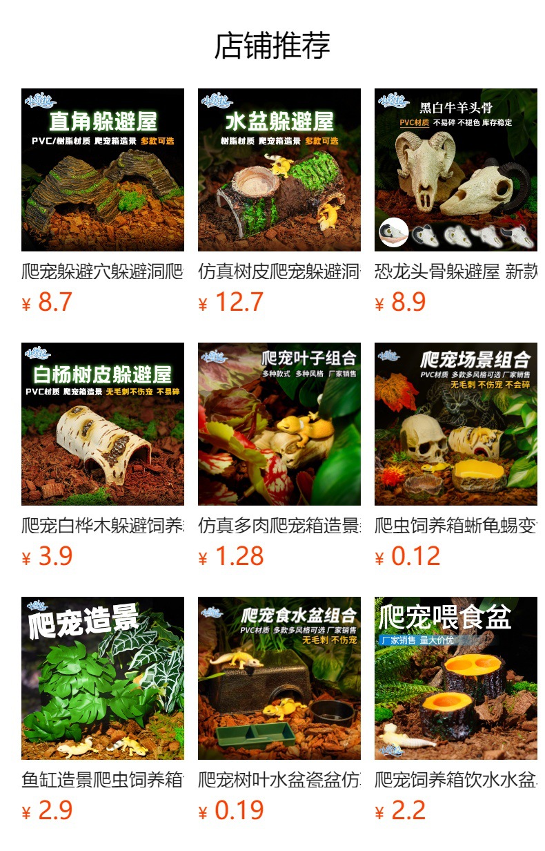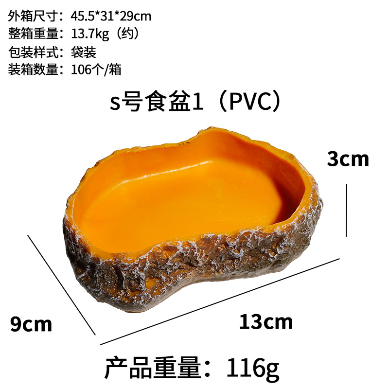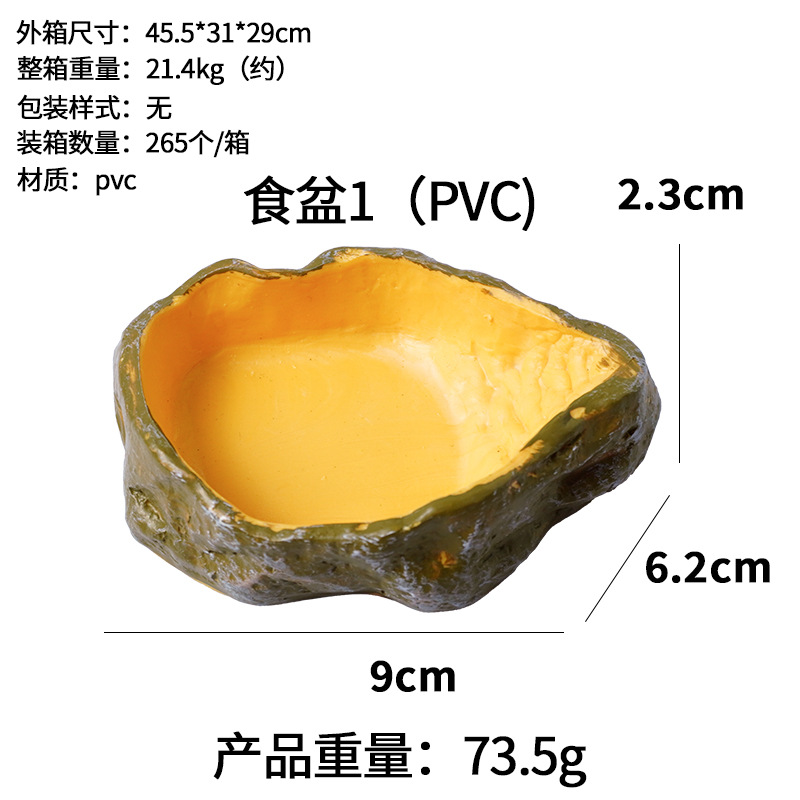 Бамбуковый тазик коричневого цвета (ПВХ); Бамбуковый тазик-зеленый (ПВХ); Флуоресцентная маленькая чашка-пень (ПВХ); Маленькая чашка для пней (ПВХ); Маленькая пластина для пня 02 (ПВХ); Миска для еды XS 1 (ПВХ); Миска для еды XS 2 (ПВХ); XS флуоресцентная миска для еды 2 (ПВХ); XS флуоресцентная миска для еды 1 (ПВХ); Миска для еды № S1 (ПВХ); Миска для еды № S2 (ПВХ); Миска для еды с отпечатком (ПВХ); Миска для еды с оранжевым отпечатком (ПВХ); Флуоресцентная миска для еды с отпечатком лап (ПВХ); Большая тарелка из смолы в форме пня; Очень большой горшок для пней (смола); Большая чашка для пней (смола); Укрытие для водной чаши (смола); S имитация известнякового укрытия (ПВХ); Черепаха размера S, поднимающаяся по лестнице (ПВХ); Маленькая кора тополя (ПВХ); Большой укрытие из коры (ПВХ); Маленький укрытие из коры (ПВХ); Специальная раковина с имитацией древесной текстуры, двойная раковина (ПВХ); Специальная раковина с текстурой древесины, одинарная раковина (ПВХ); Пи-образный укрытие для ствола дерева — жёлтый (ПВХ); Пи-образный укрытие для ствола дерева — серый (ПВХ); Большой поддон для пней (ПВХ); Большая чашка для пней (ПВХ); Экстра-большая чашка для пней (ПВХ); Небольшой угловой укрытие для поддона для воды (ПВХ); Укрытие для водной чаши (ПВХ); Прямоугольный навес (ПВХ)