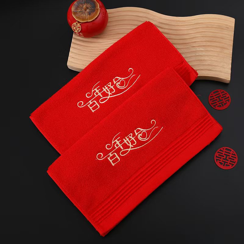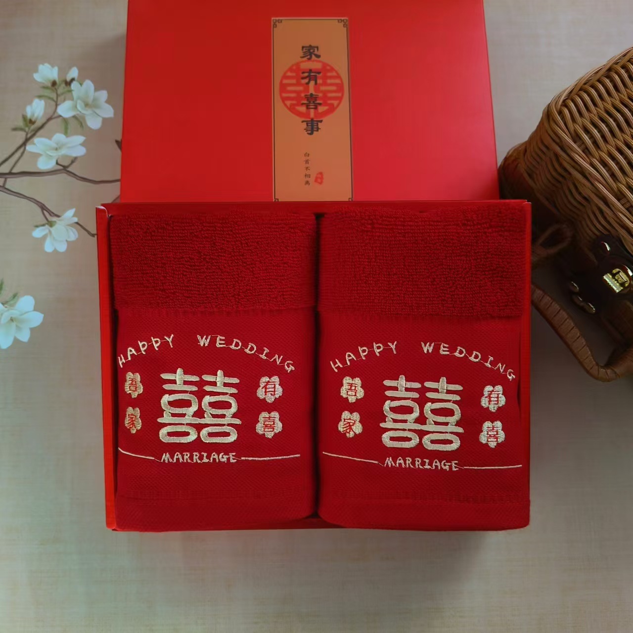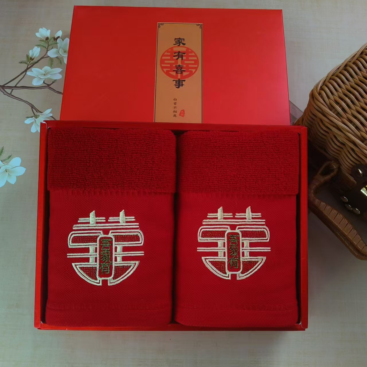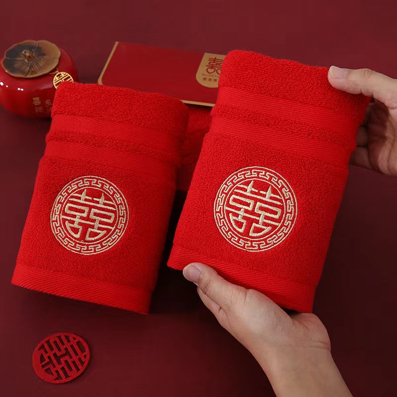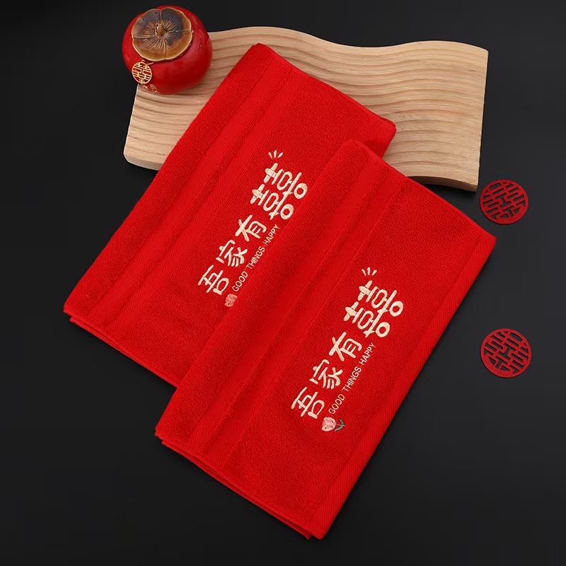 Красное Свадебное Полотенце с вышивкой Happy Word Хлопковое полотенце Свадебный возврат Подарочная коробка Сопровождающий подарок Утолщенный подарок Привет полотенце