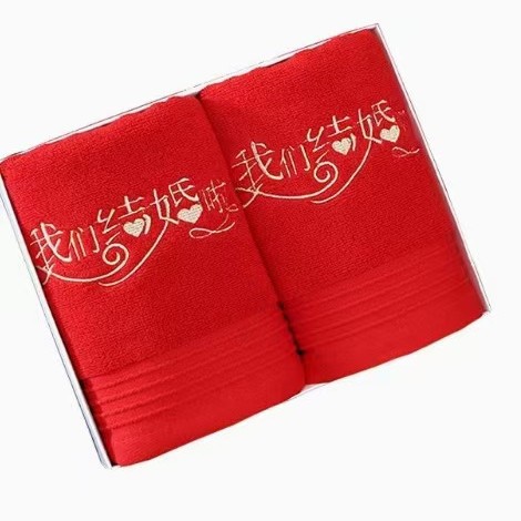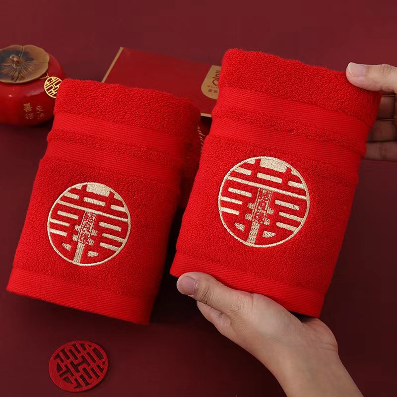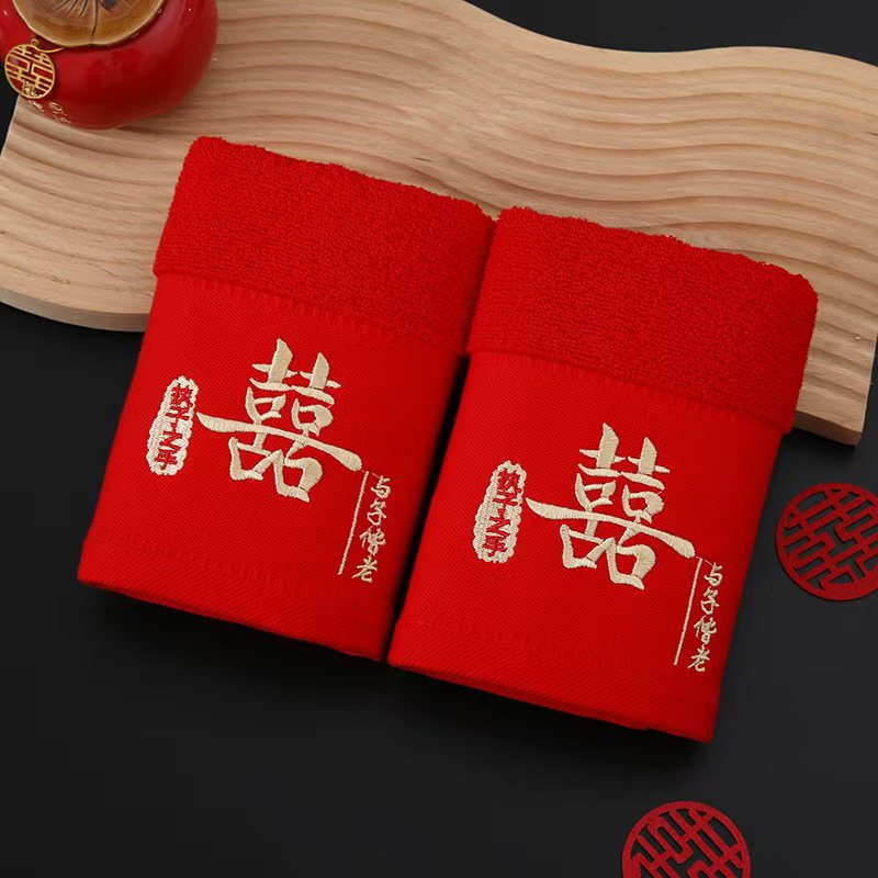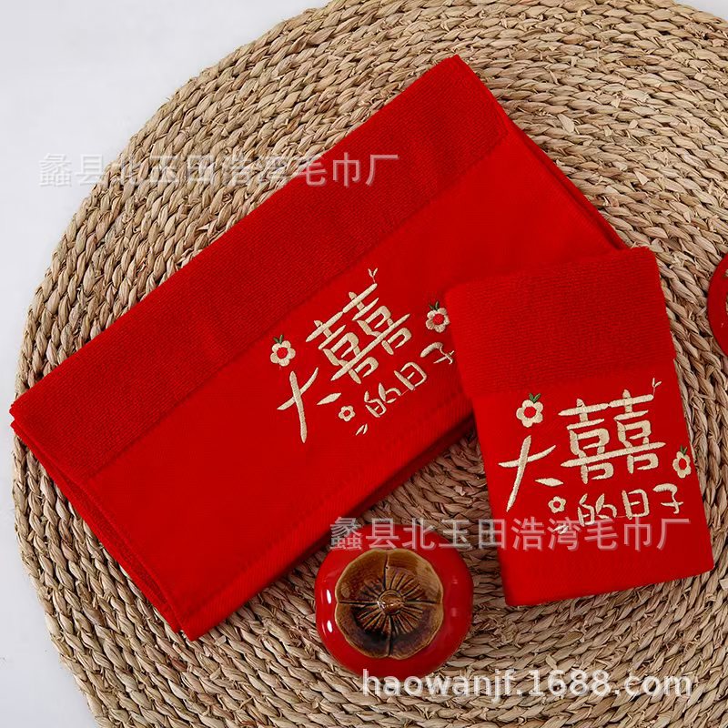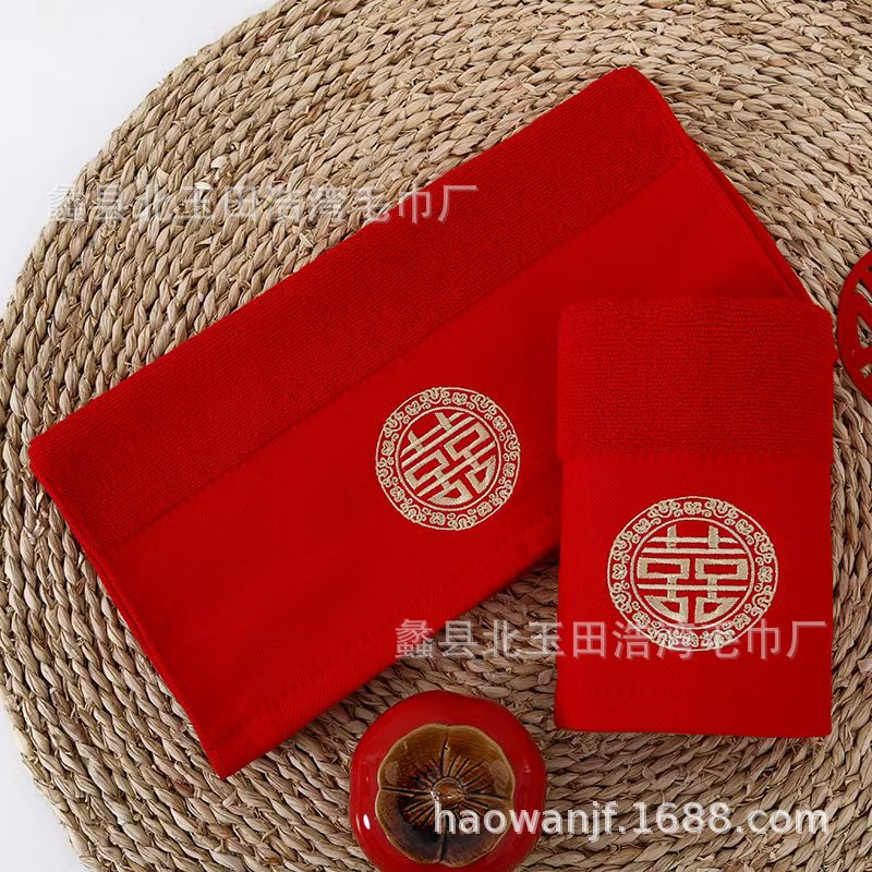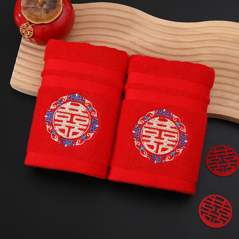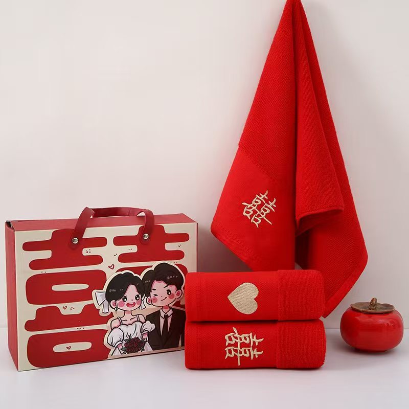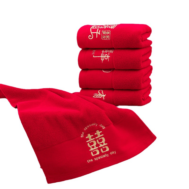 Красное Свадебное Полотенце с вышивкой Happy Word Хлопковое полотенце Свадебный возврат Подарочная коробка Сопровождающий подарок Утолщенный подарок Привет полотенце