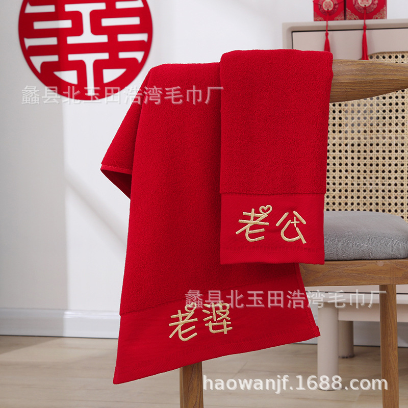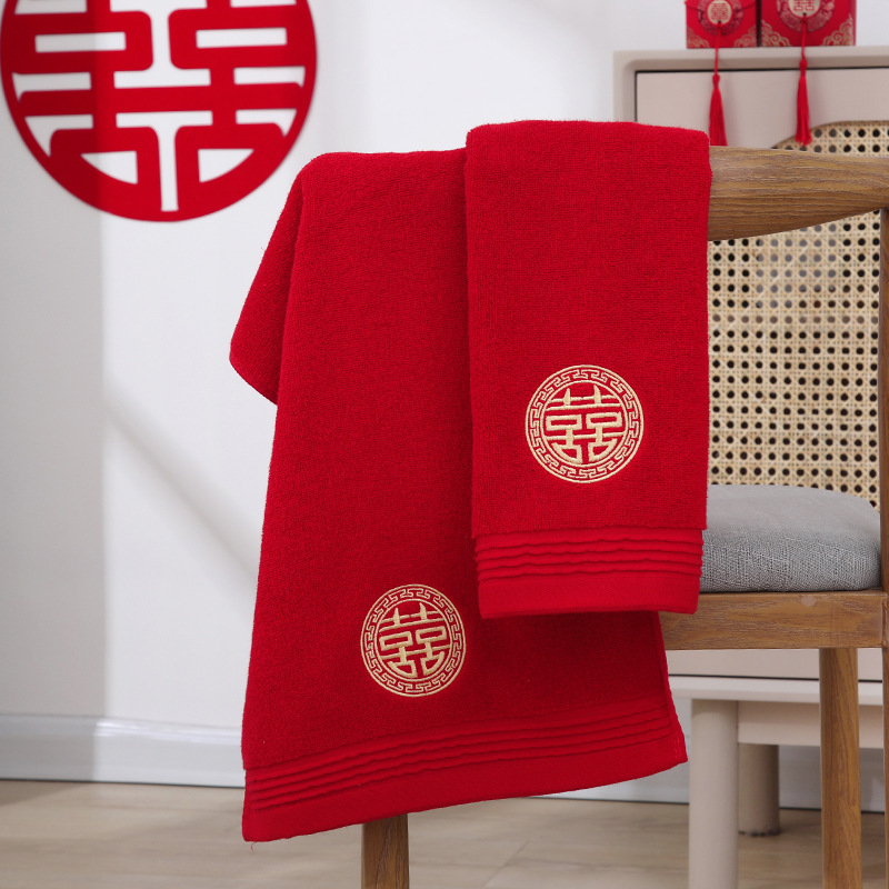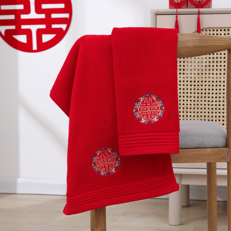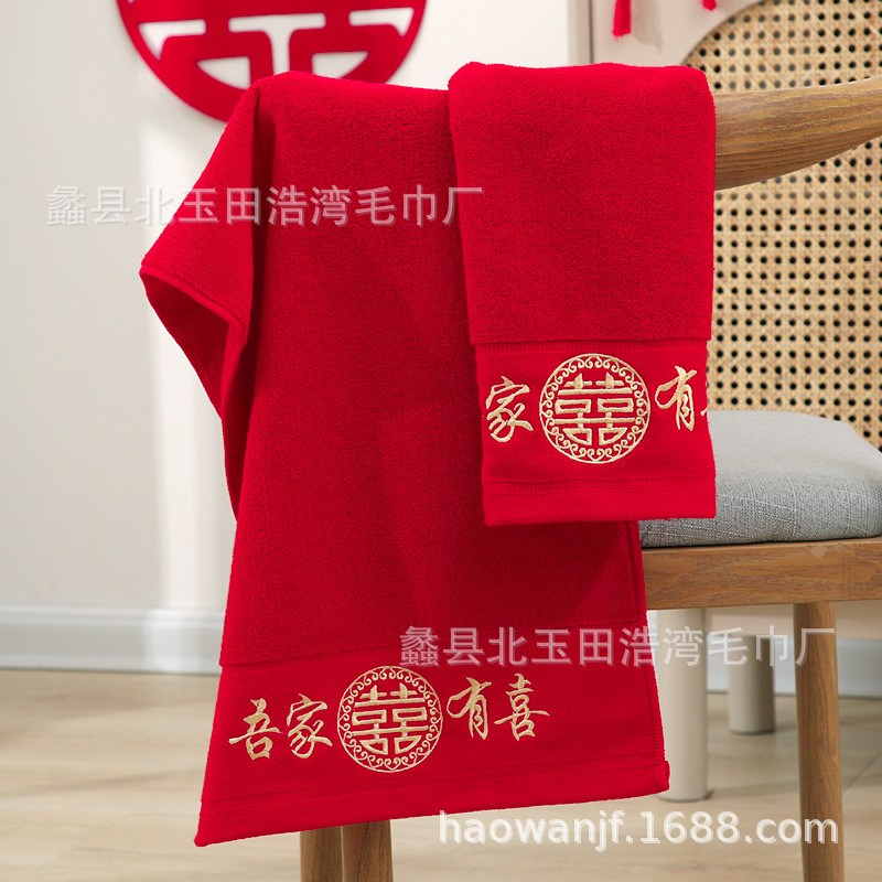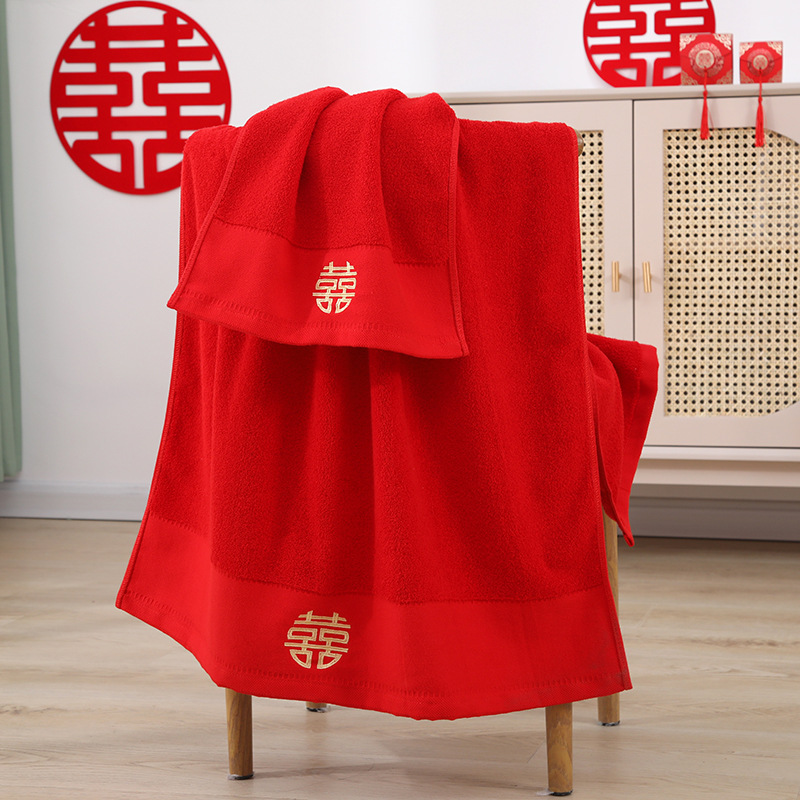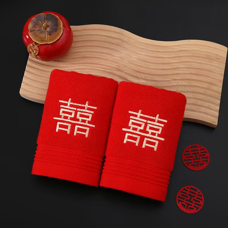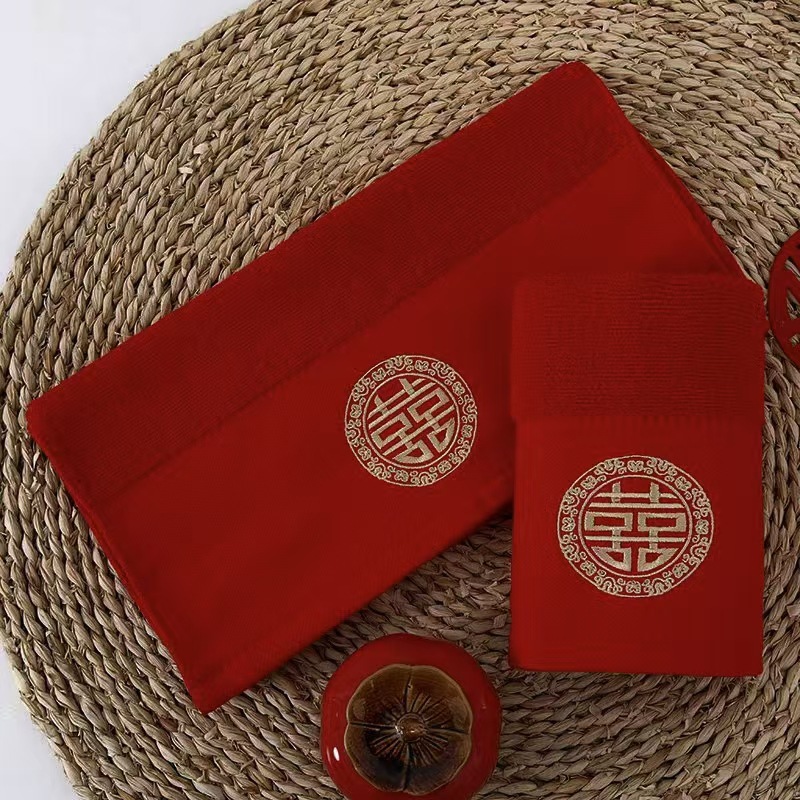 Красное Свадебное Полотенце с вышивкой Happy Word Хлопковое полотенце Свадебный возврат Подарочная коробка Сопровождающий подарок Утолщенный подарок Привет полотенце
