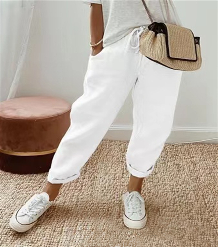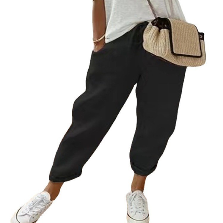 2024 Европейские и американские трансграничные независимые станции Amazon женские хлопковые и льняные карманы эластические повседневные брюки женские весенние летние брюки женские брюки