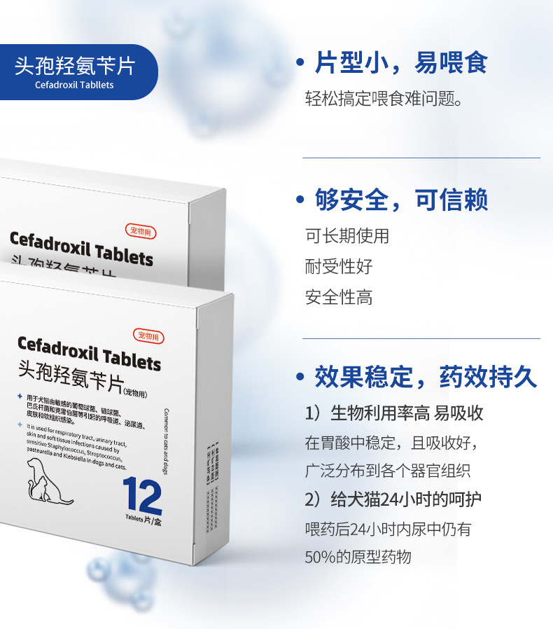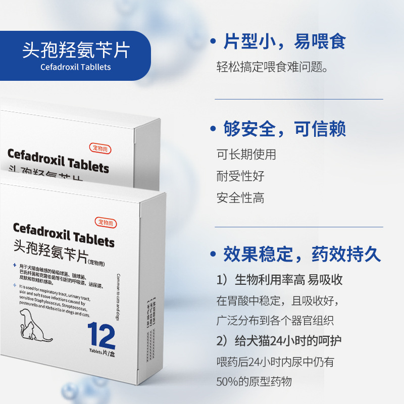 Цефалексин таблетки 12 таблеток/коробка для собак и кошек, инфекции дыхательных путей, мочевыводящих путей, противовоспалительные средства для домашних животных, новое здоровье домашних животных