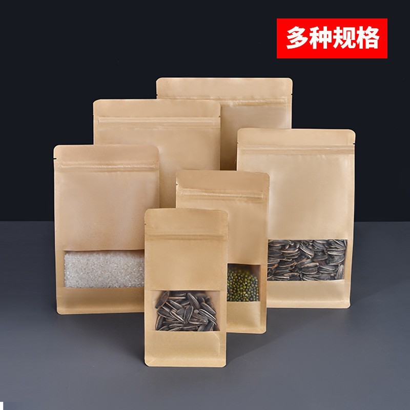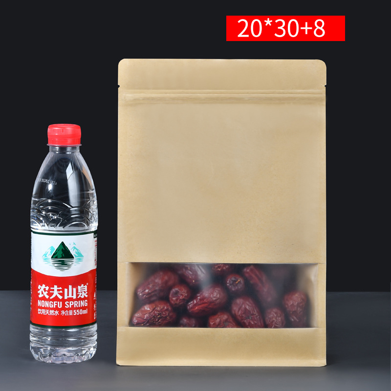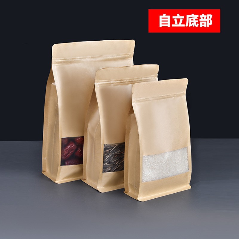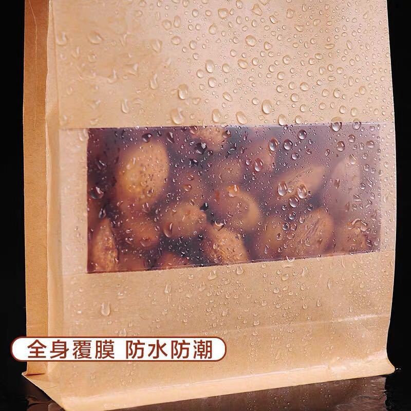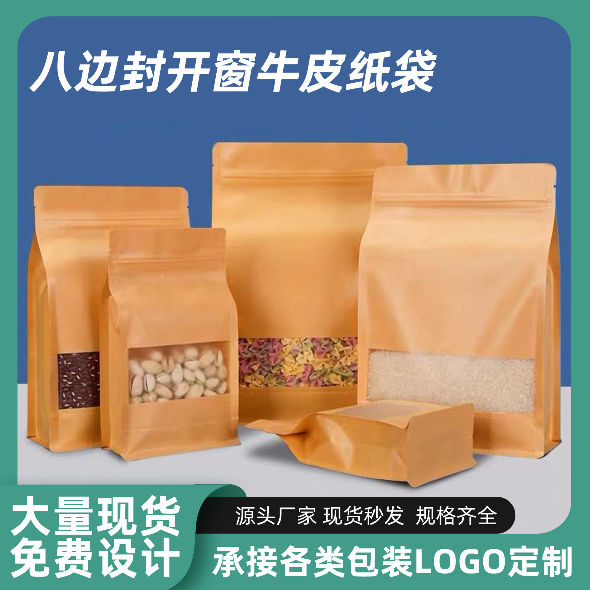 Подарочный пакет с матовым окном Запечатанный пакет из крафт-бумаги с восемью сторонами Чайная еда Герметичный пакет Общая зерновая еда Герметичный