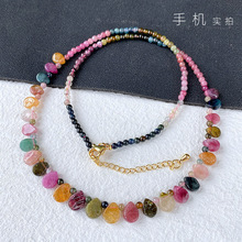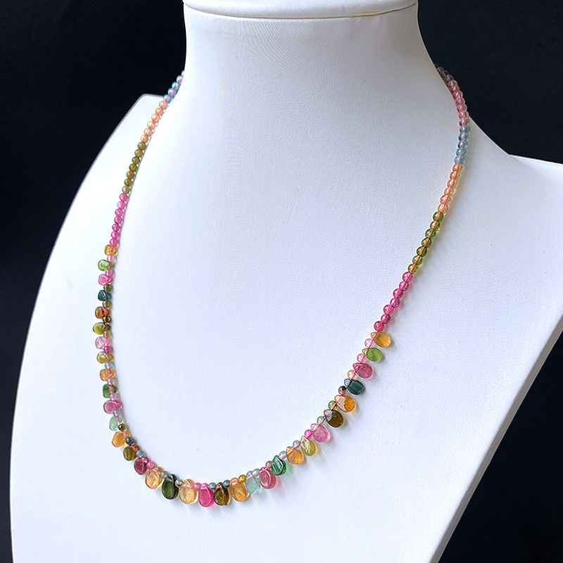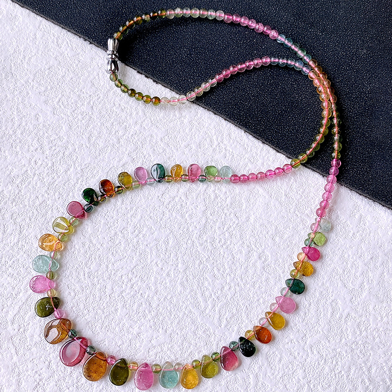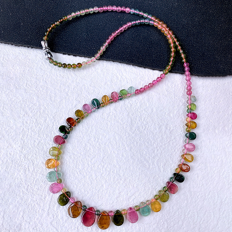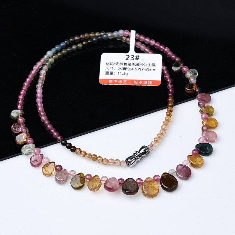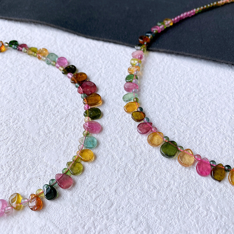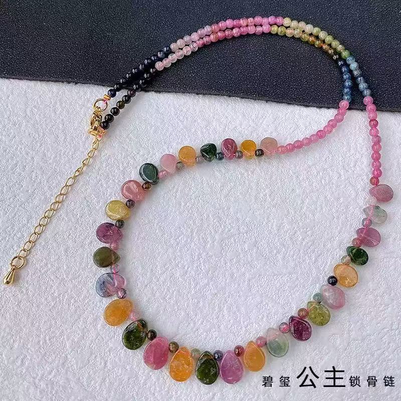 Натуральное прозрачное ожерелье из радужного турмалина, цепочка на ключицы, легкое роскошное украшение в стиле кэнди-гёрл, подарок, ювелирное изделие в форме капли воды