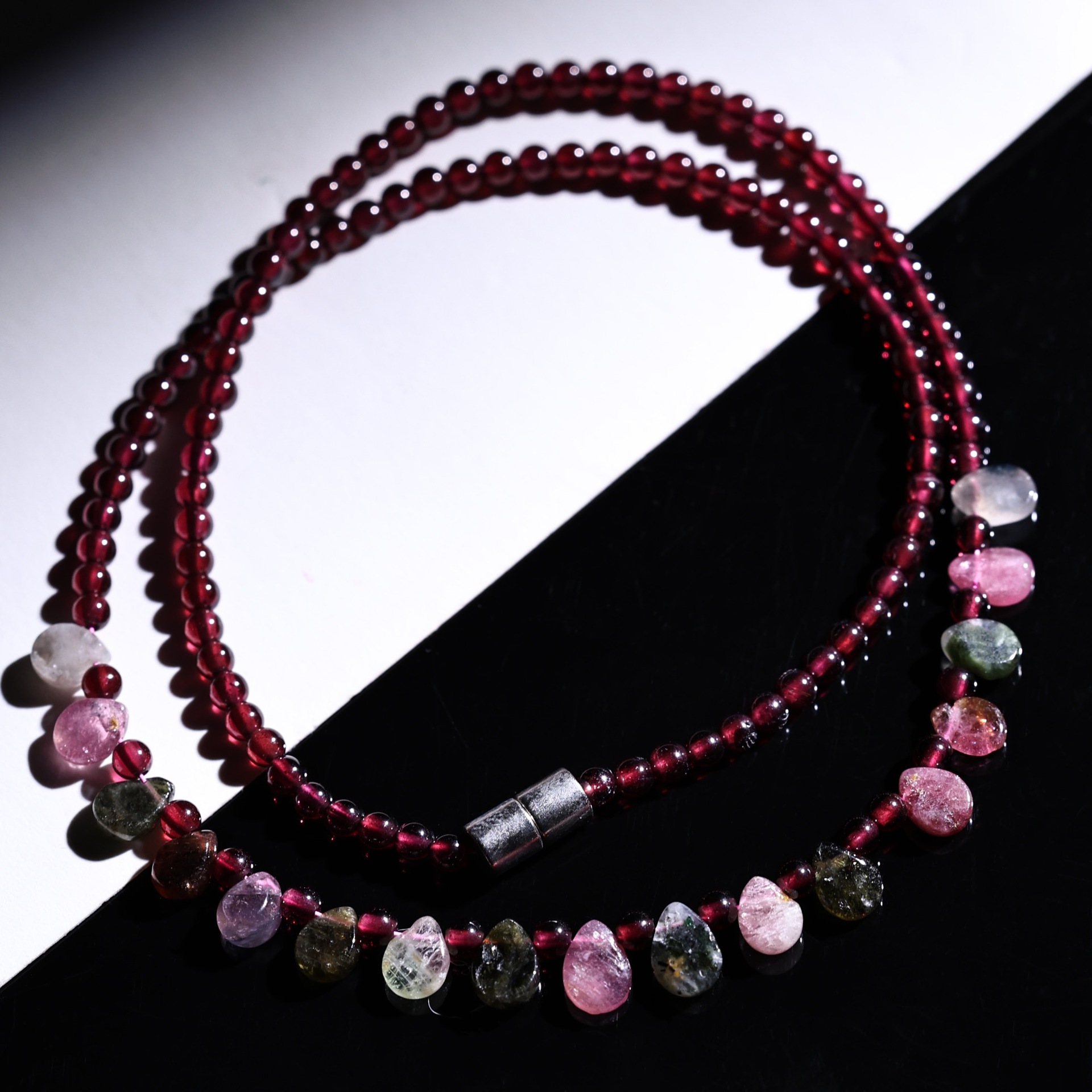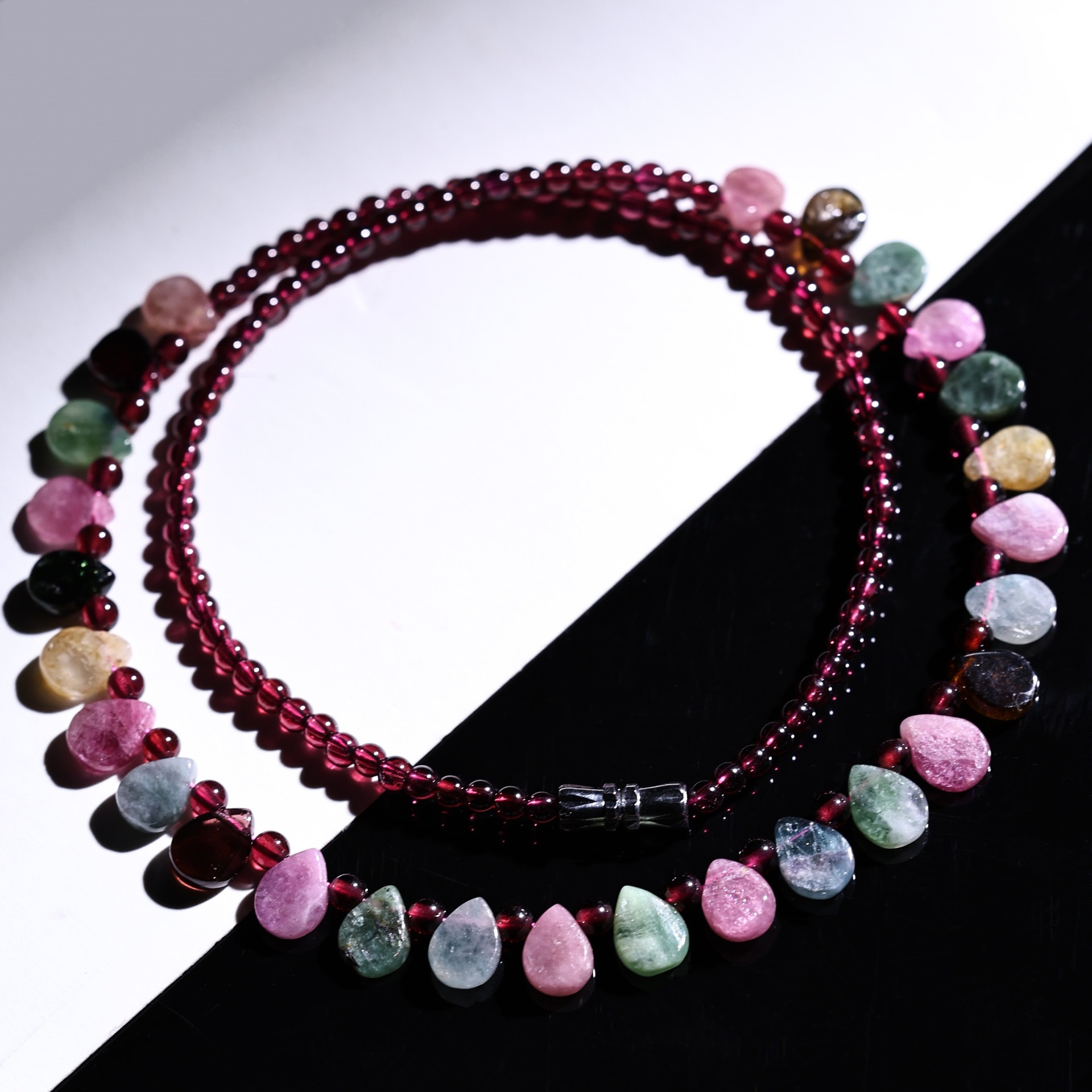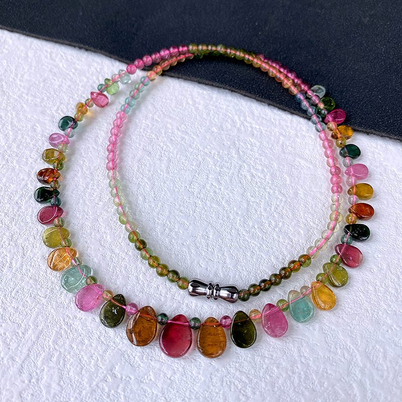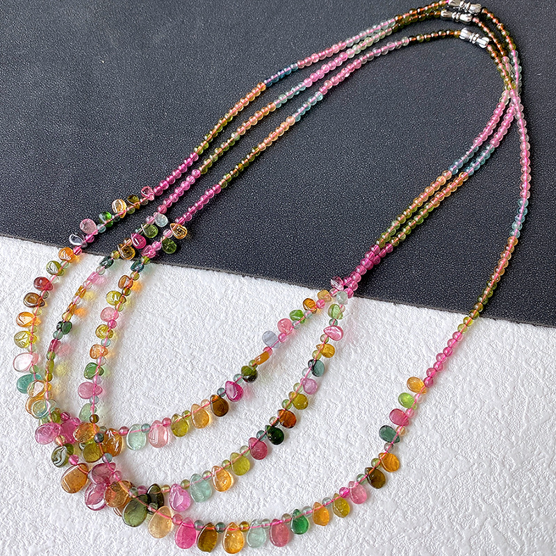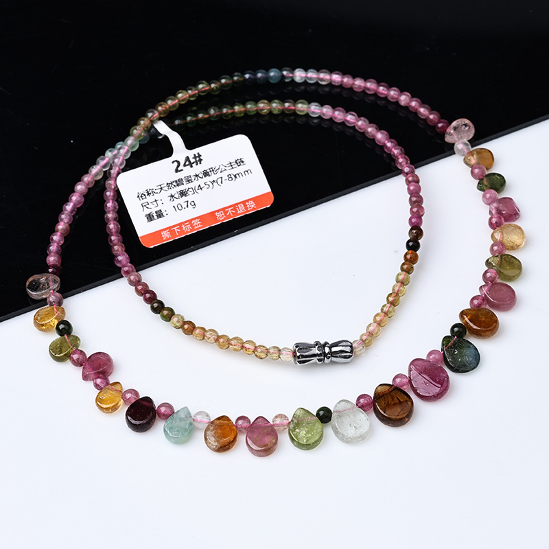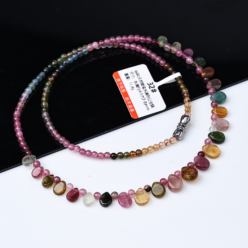 [Изысканное] Ожерелье с башней в форме капли воды из турмалина; [Классическое] Ожерелье с башней в форме капли воды из турмалина; Гранат + 17 капель турмалина (магнитная застежка); Гранат + 29 капель турмалина (застежка-винт)