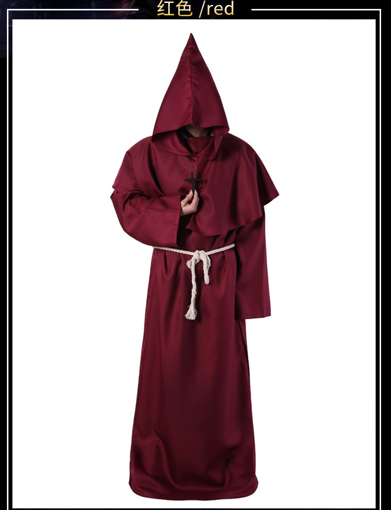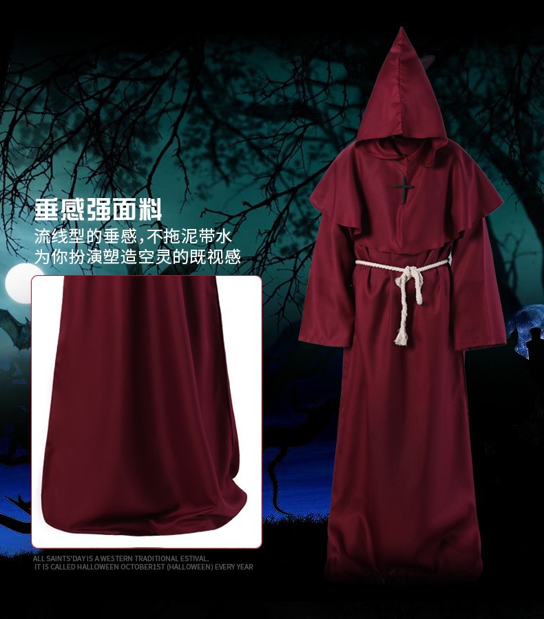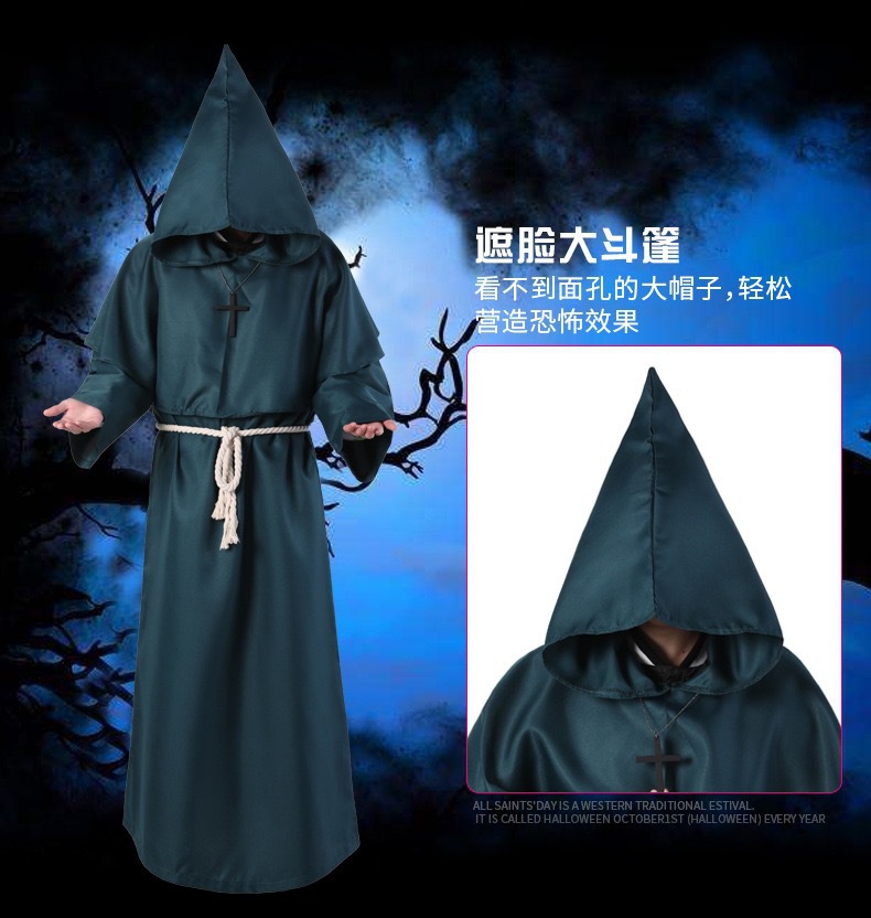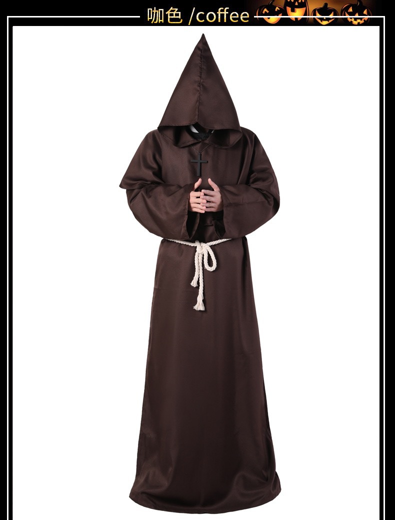 St. Vida Хэллоуин Костюм Средневековый монах Трансграничный костюм монаха Костюм волшебника Священник COSPlay Костюм Шаль