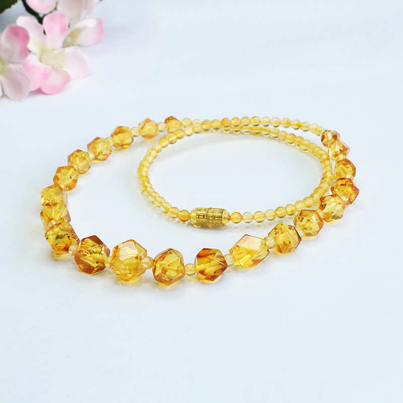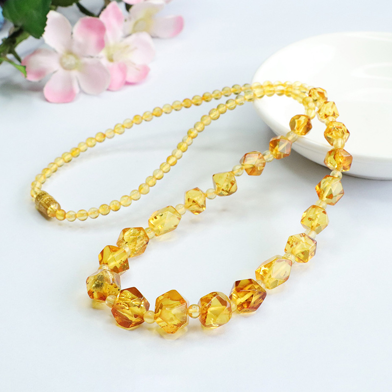 Как Ю натуральный янтарь ожерелье цветок перец вырезать шеи цепи золотой жемчуг цепи оптовая фабрика HP3070705