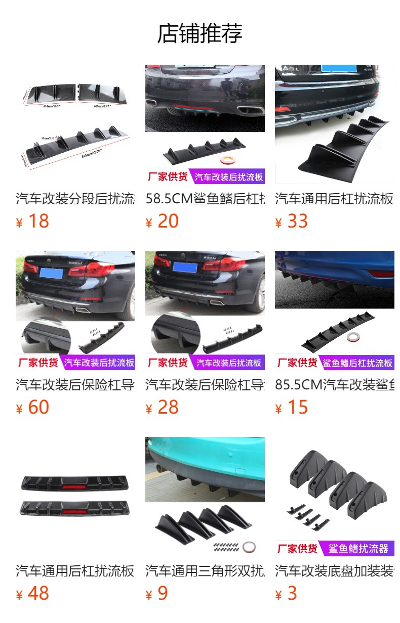 汽车改装分段后扰流板 二段式扩散器 鲨鱼鳍底盘后扰流分体导流板