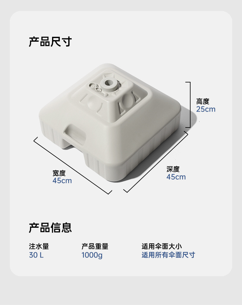 Zunchi Средняя колонна Зонтик Резервуар для воды Открытый солнцезащитный Зонт База Пластиковый зонтик База Зонт Пирс Солнцезащитный Зонт Инъекция воды Инъекция песка Простая