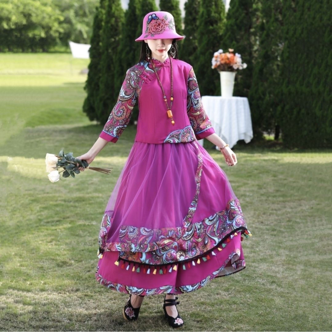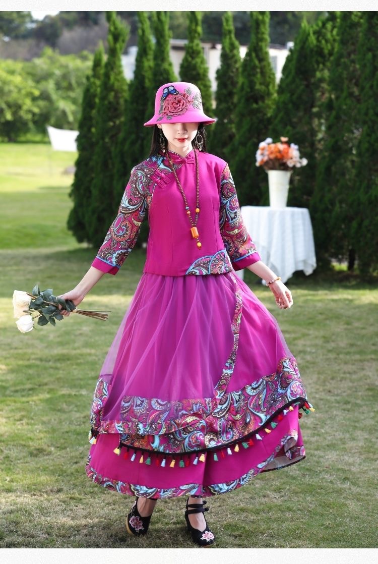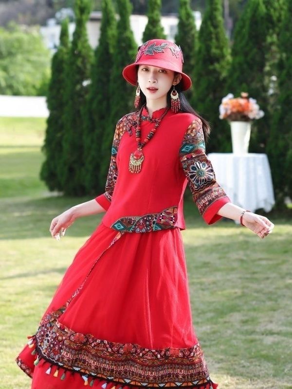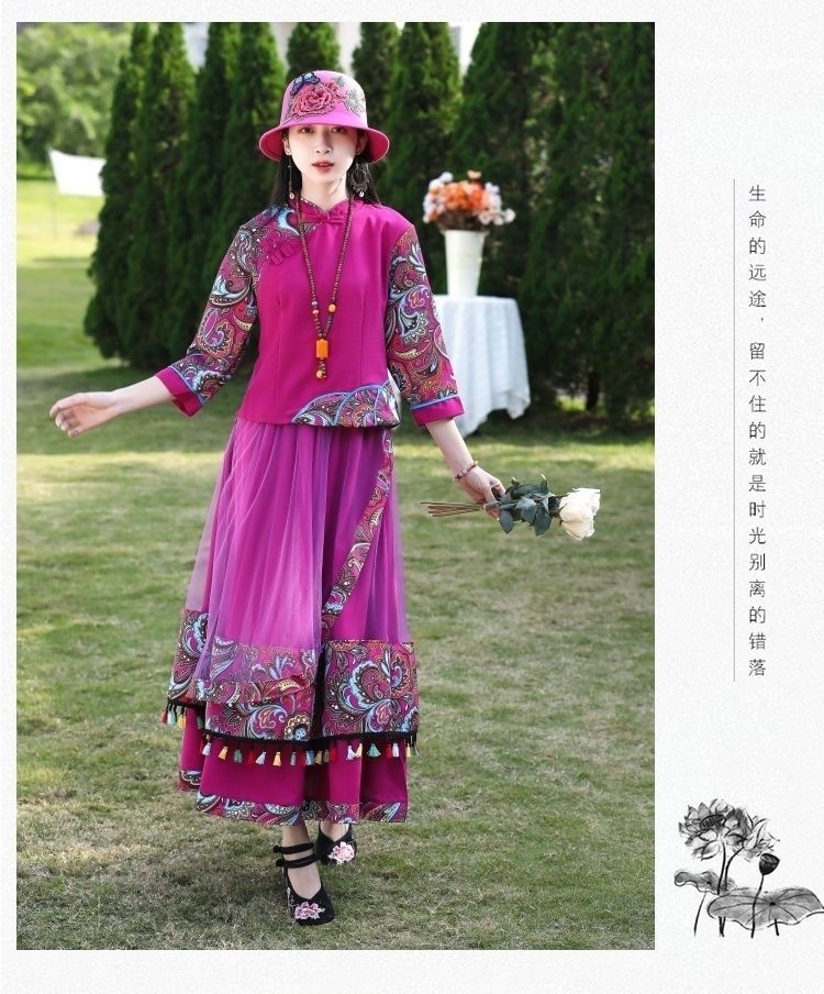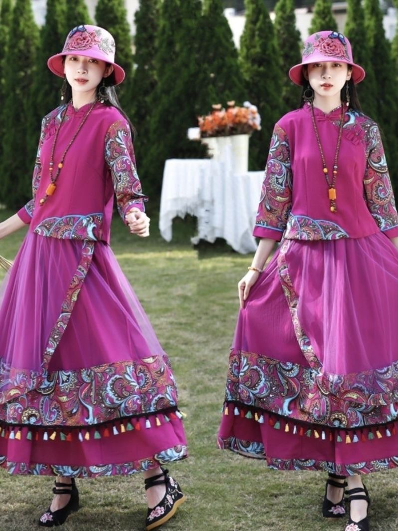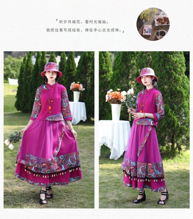 Юньнань этнический стиль костюм юбка из двух частей костюм весна и осень новая Этническая Одежда Хлопок Лен костюм юбка в стиле ретро