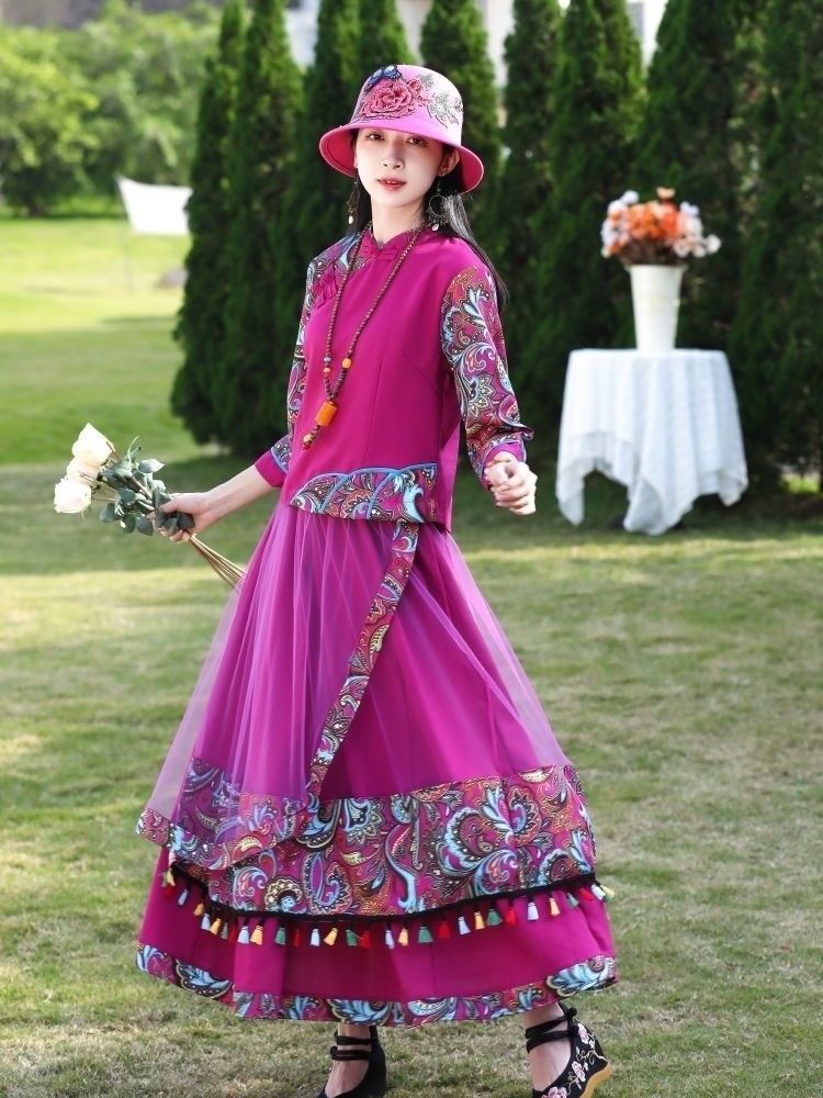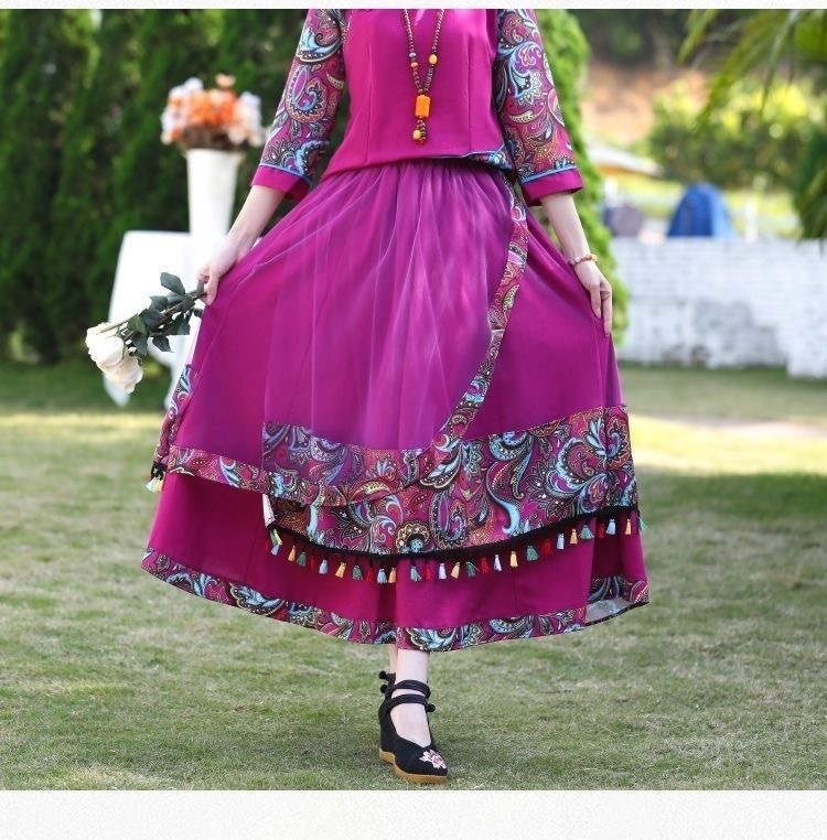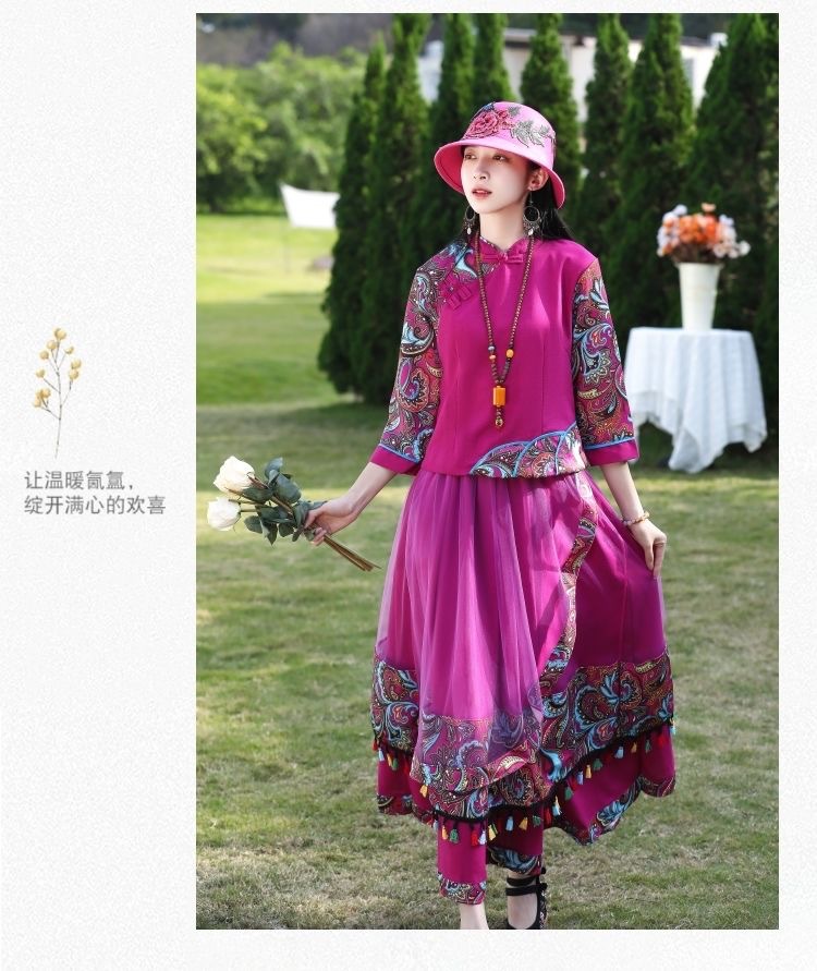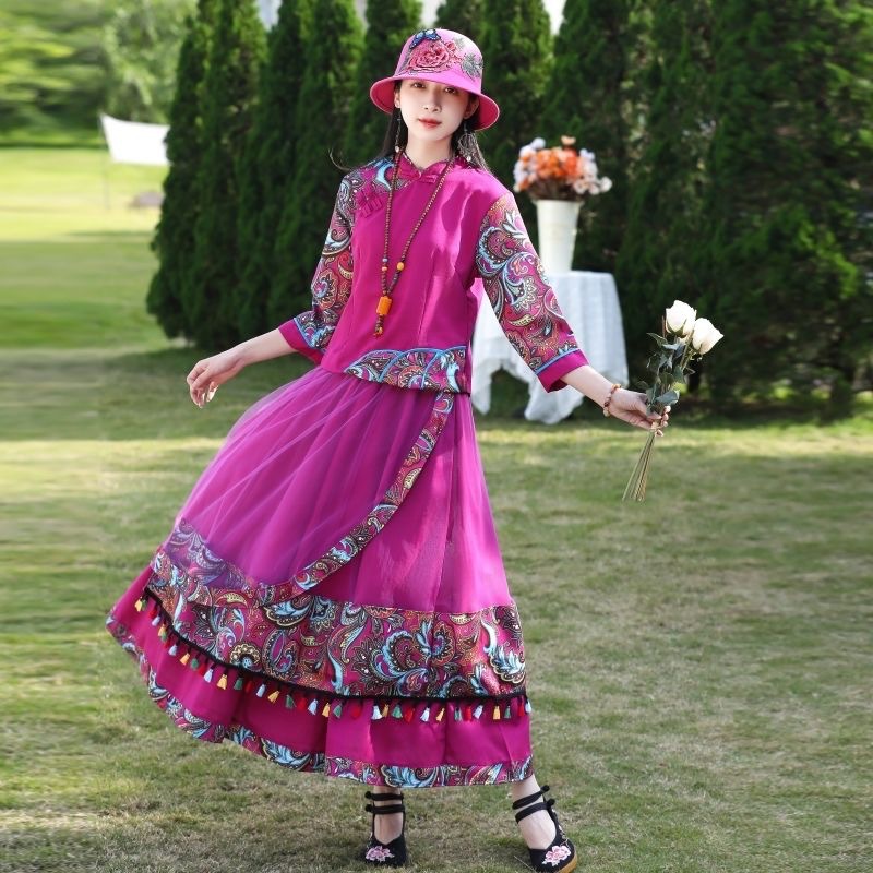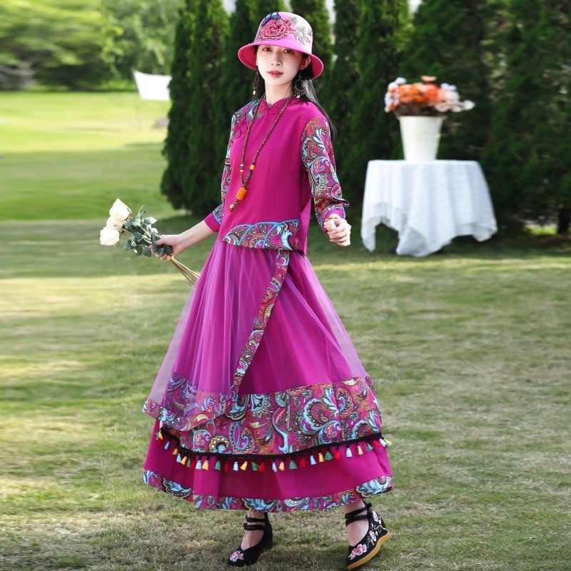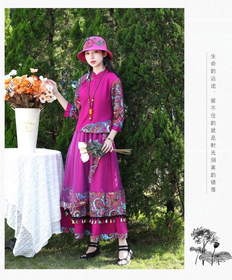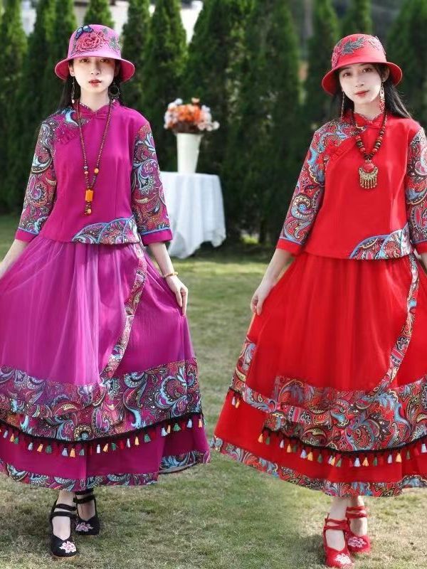 Юньнань этнический стиль костюм юбка из двух частей костюм весна и осень новая Этническая Одежда Хлопок Лен костюм юбка в стиле ретро