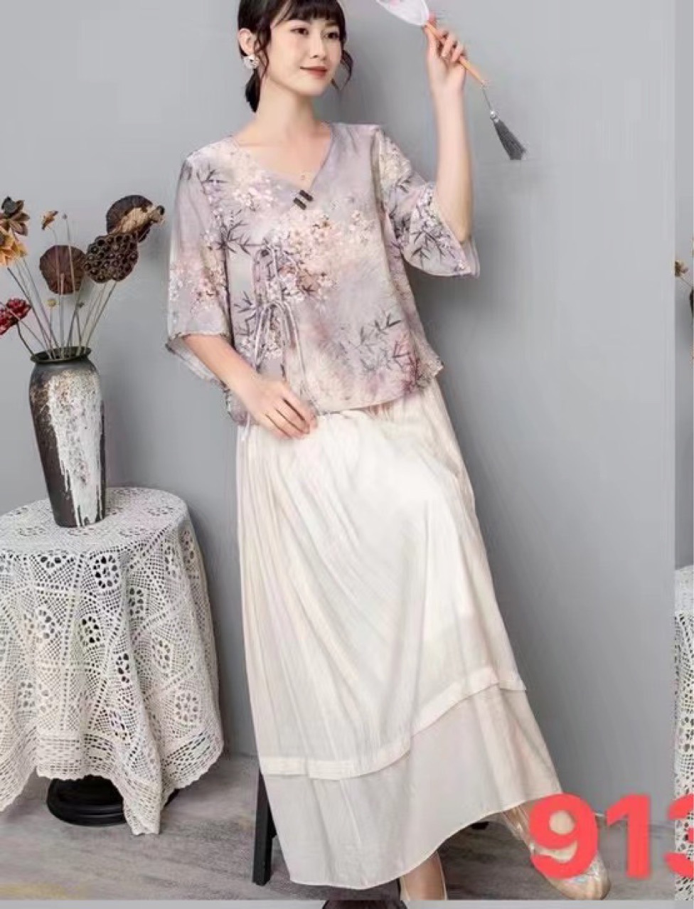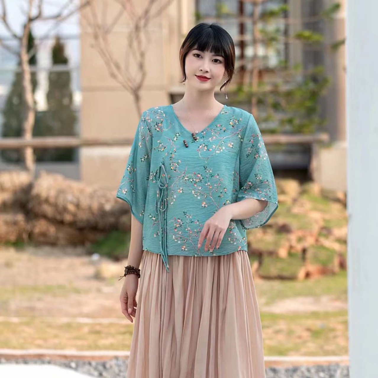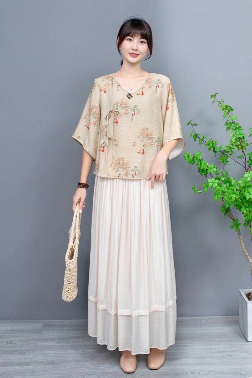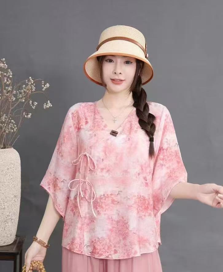 Костюм в этническом стиле, повседневный топ с V-образным вырезом, в китайском стиле, весенне-летняя вышивка, темперамент, шнуровка с коротким рукавом, женская одежда оптом