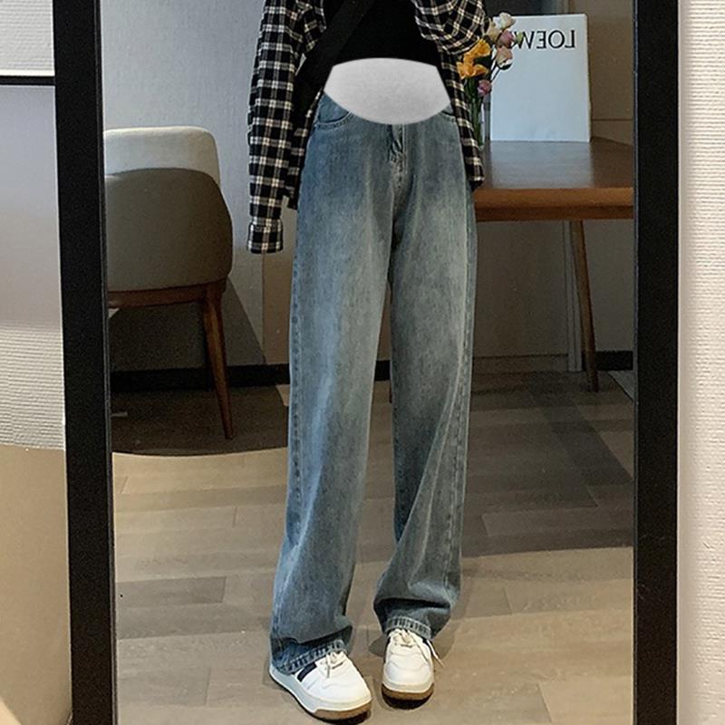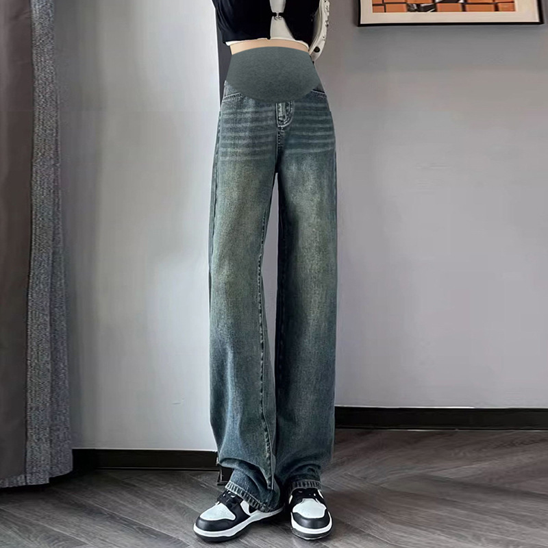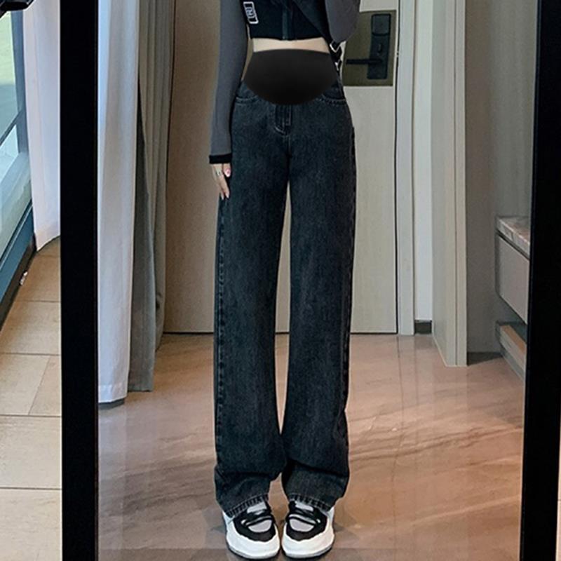 9513 свободные осенние джинсы с широкими штанинами для беременных верхняя одежда облегающие прямые швабры с драпировкой брюки с высокой талией для поддержки живота