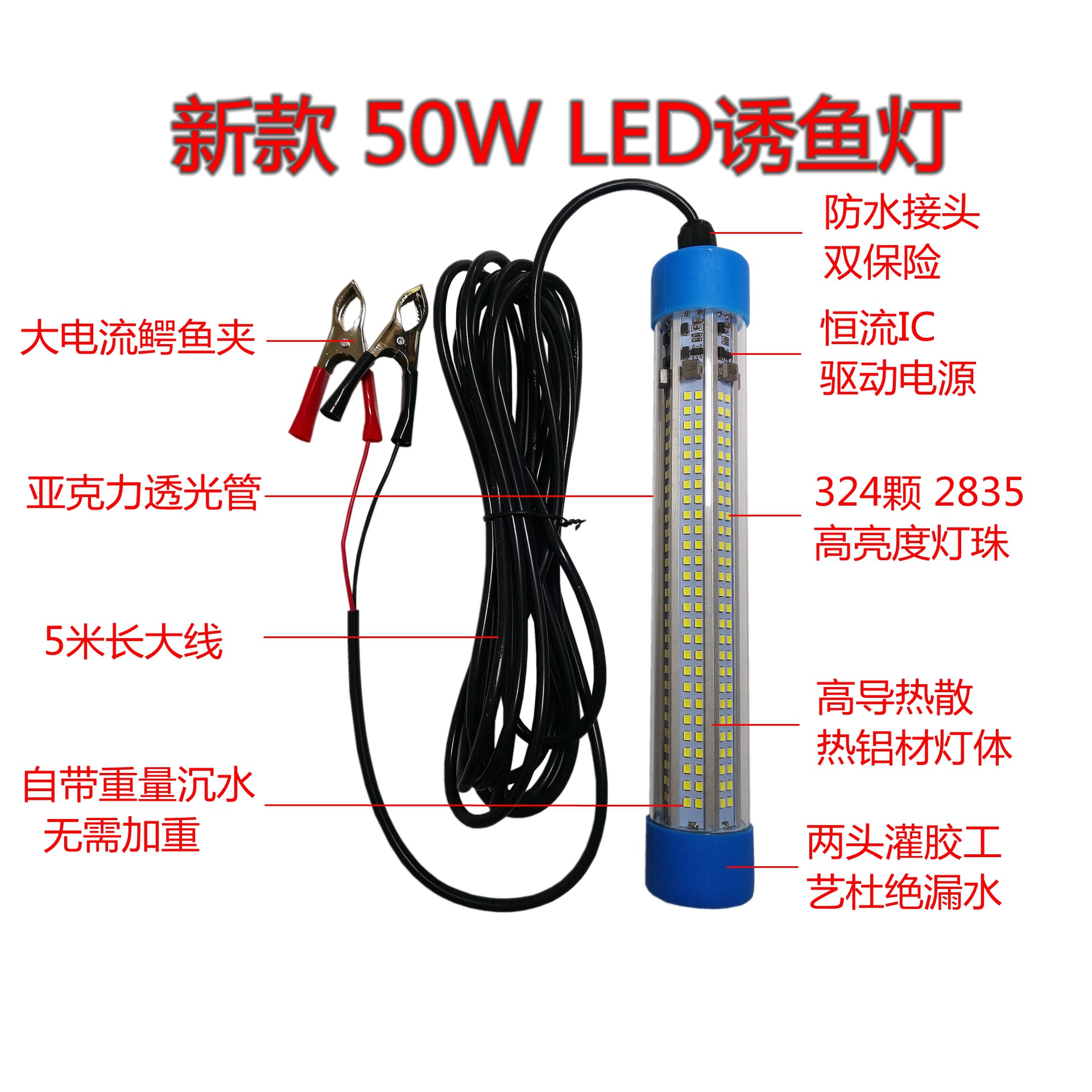 Светодиодный светильник для привлечения рыбы 12-24В, высокой яркости, высокой мощности, 50Вт, уличный, водонепроницаемый IP68, для привлечения и сбора рыбы, подводный светильник, быстро привлекает рыбу